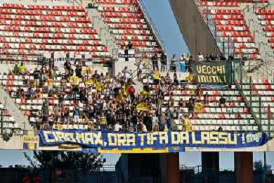 Supporters of Parma Calcio during the Coppa Italia Round of 32 match between SSC Bari and Parma Calcio at stadio San Nicola on August 12, 2023 in Bari, Italy. (Photo by Emmanuele Mastrodonato/ag. Aldo Liverani sas)