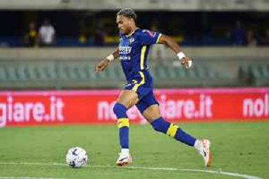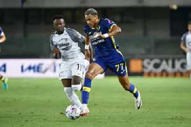 TVRG Hellas Verona vs Ascoli nella foto Jordi Mboula (Hellas Verona) Verona 12-08-2023 Stadio Marcantonio Bentegodi Coppa Italia Frecciarossa - 32mi di finale foto Roberto Garavaglia/ag. Aldo Liverani sas