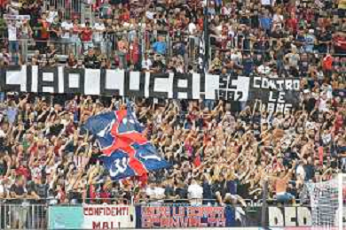 12-8-2023. Cagliari calcio-Palermo calcio. Trentaduesimi Coppa Italia Freccia Rossa 2023/2024, Stadio Unipol Domus Cagliari. Foto Salvatore Moi/Agenzia Aldo Liverani s.a.s. Nella foto: Sconvolts, tifosi del Cagliari in casa, nella curva nord dello stadio Unipol Domus di Cagliari ©MOI SALVATORE / AGENZIA ALDO LIVERANI SAS