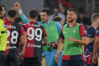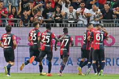 12-8-2023. Cagliari calcio-Palermo calcio. Trentaduesimi Coppa Italia Freccia Rossa 2023/2024, Stadio Unipol Domus Cagliari. Foto Salvatore Moi/Agenzia Aldo Liverani s.a.s. Nella foto: Gol ed esultanza del Cagliari in casa contro il Palermo, nello stadio Unipol Domus di Cagliari. Segna:Alessandro Di Padro Cagliari ©MOI SALVATORE / AGENZIA ALDO LIVERANI SAS