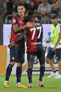 12-8-2023. Cagliari calcio-Palermo calcio. Trentaduesimi Coppa Italia Freccia Rossa 2023/2024, Stadio Unipol Domus Cagliari. Foto Salvatore Moi/Agenzia Aldo Liverani s.a.s. Nella foto: Zito Luvumbo Cagliari - esultanza ©MOI SALVATORE / AGENZIA ALDO LIVERANI SAS