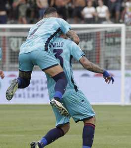 Esultanza dopogol Charles Pickel con franco vazquez - CREMONESE vs CROTONE Coppa Italia Frecciarossa 14 Agosto 2023 ©PAOLO GIAMPIETRI / AGENZIA ALDO LIVERANI SAS
