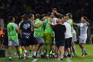 TVMV-Torino 14.08.2023 Stadio Grande Torino ©Manuela Viganti/Agenzia Aldo Liverani Torino vs Feralpisalò Coppa Italia Frecciarossa 2023/2024 32imi Nella foto: esultanza feralpisalò dopo il gol di davide di molfetta ©Viganti / AGENZIA ALDO LIVERANI SAS