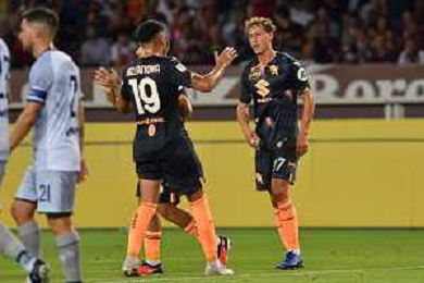TVMV-Torino 14.08.2023 Stadio Grande Torino ©Manuela Viganti/Agenzia Aldo Liverani Torino vs Feralpisalò Coppa Italia Frecciarossa 2023/2024 32imi Nella foto: esultanza ivan ilic e simone verdi dopo il gol ©Viganti / AGENZIA ALDO LIVERANI SAS