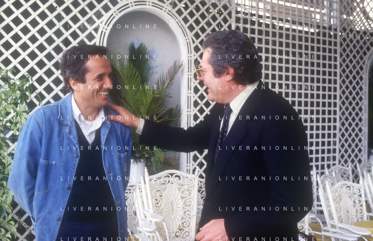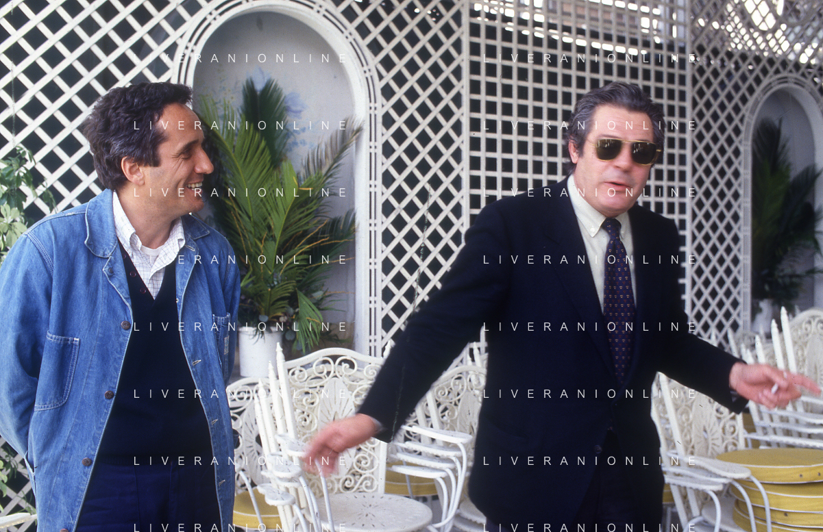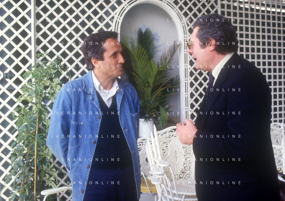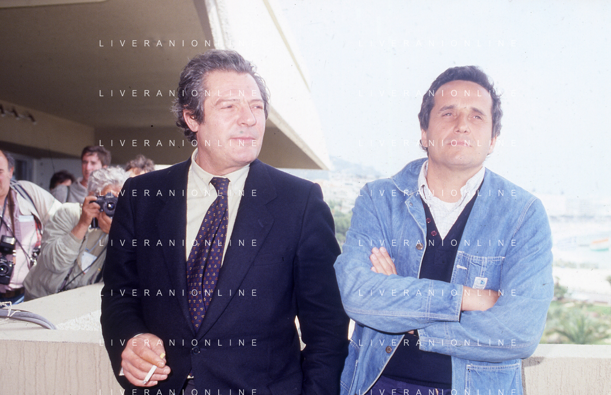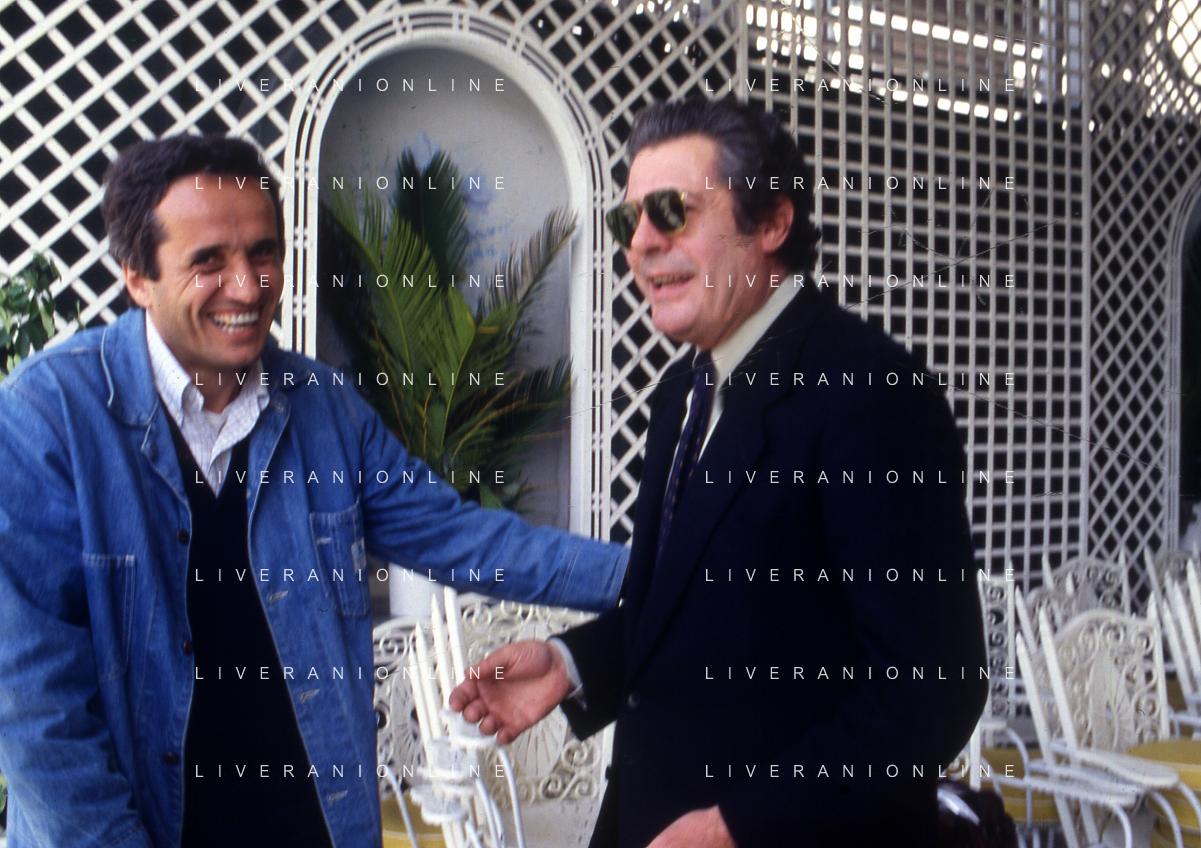 DIAP-RETROSPETTIVA MARCO BELLOCCHIO REGISTA NELLA FOTO MARCO BELLOCCHIO A CANNES NELL'ANNO 1984 CON MARCELLO MASTROIANNI AG ALDO LIVERANI SAS