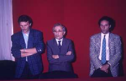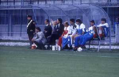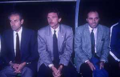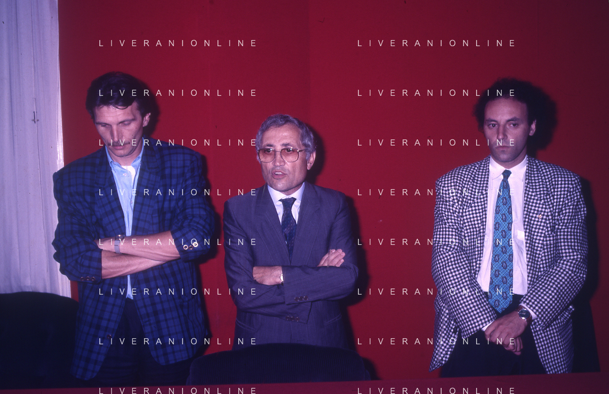 DIAP-RETROSPETTIVA GIUSEPPE MAROTTA DIRIGENTE SPORTIVO NELLA FOTO GIUSEPPE MAROTTA NELL'ANNO 1988 CON PIELUIGI FROSIO ALLENATORE MONZA CALCIO E IL PRESIDENTE VALENTINO GIAMBELLI PRES MONZA CALCIO AG ALDO LIVERANI SAS