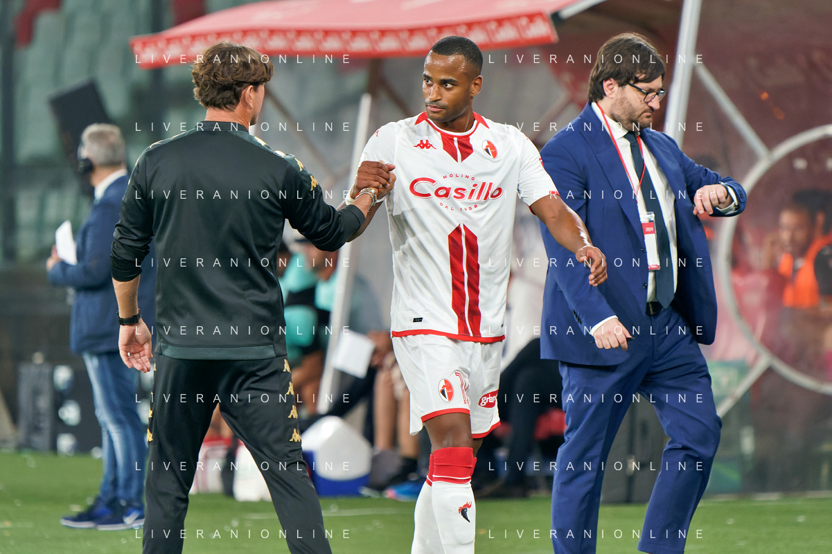 Davide Diaw (SSC Bari) and coach Michele Mignani (SSC Bari) during the Italian Serie B match SSC Bari vs Palermo FC on August 18, 2023 at the San Nicola stadium in Bari, Italy. Photo by Emmanuele Mastrodonato/ag. Aldo Liverani sas