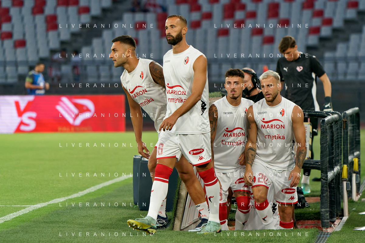 SSC Bari players enter the field for warm-up during the Italian Serie B match SSC Bari vs Palermo FC on August 18, 2023 at the San Nicola stadium in Bari, Italy. Photo by Emmanuele Mastrodonato/ag. Aldo Liverani sas/AGENZIA ALDO LIVERANI SAS