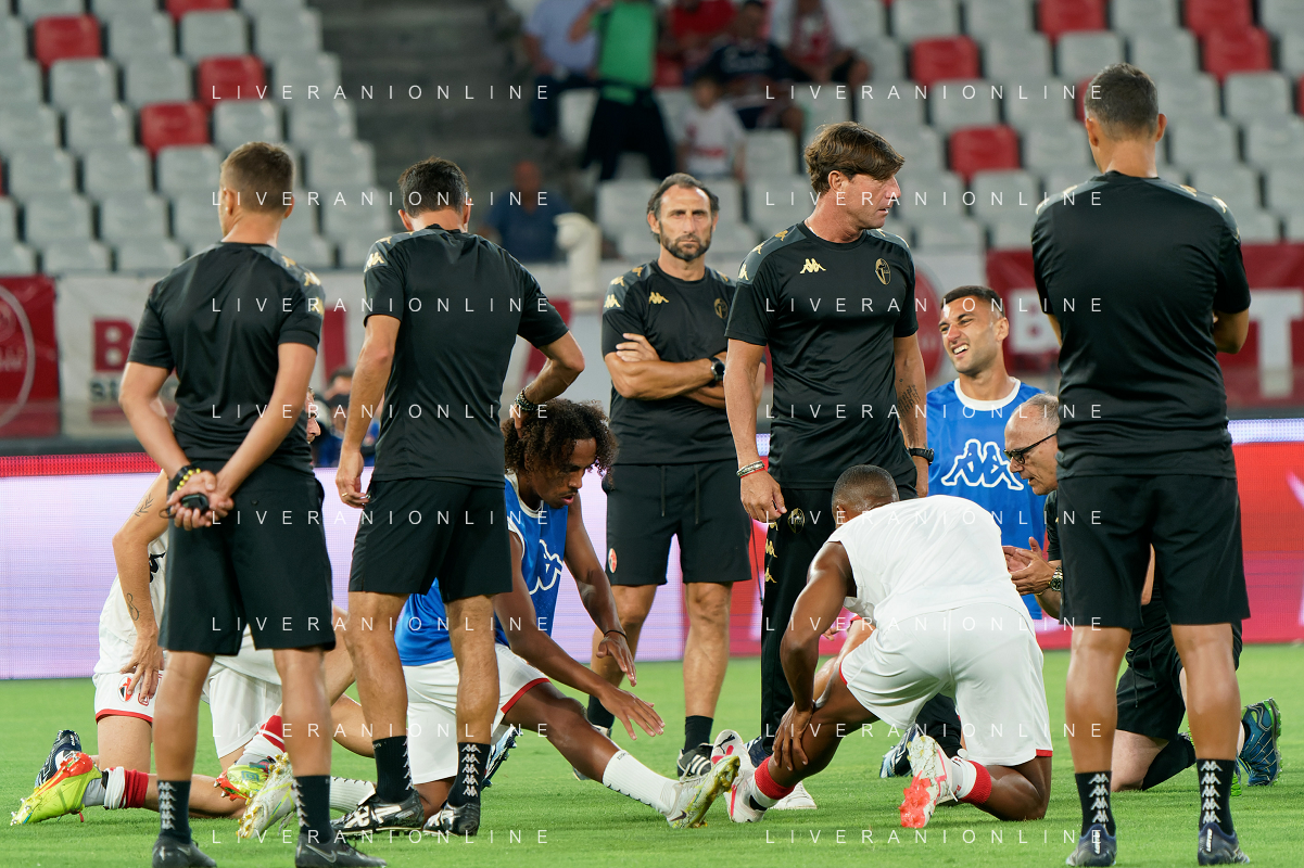 Ahmad Benali (SSC Bari) warm up during the Italian Serie B match SSC Bari vs Palermo FC on August 18, 2023 at the San Nicola stadium in Bari, Italy. Photo by Emmanuele Mastrodonato/ag. Aldo Liverani sas/AGENZIA ALDO LIVERANI SAS