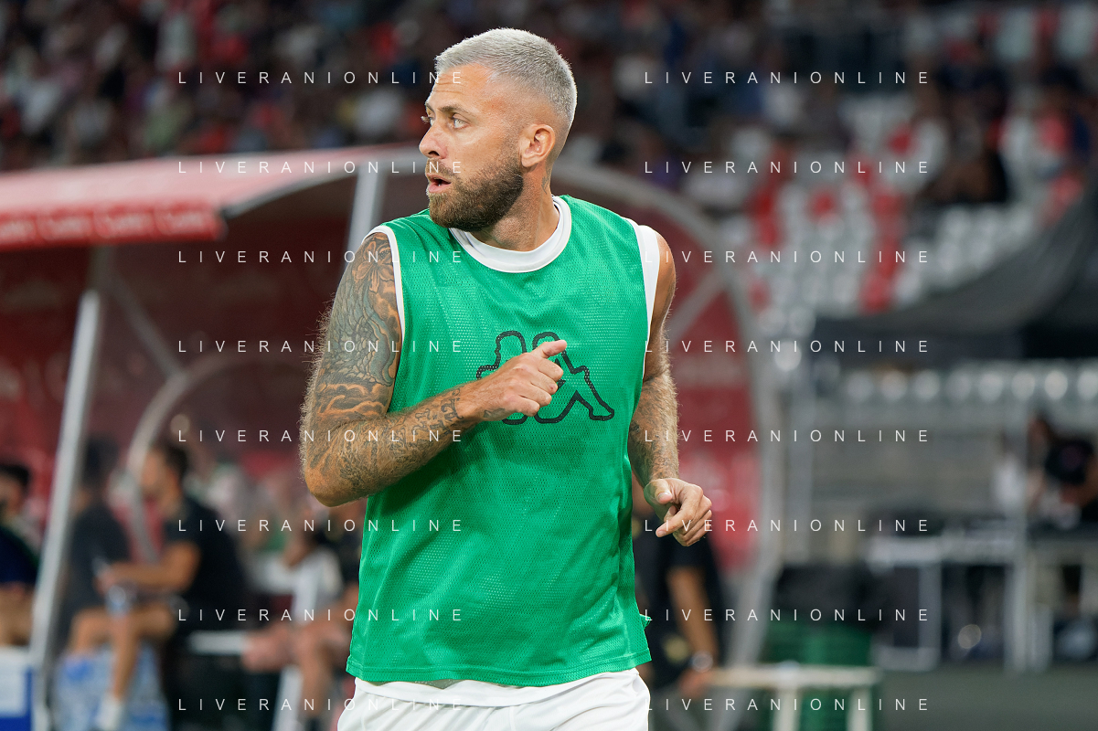 Jeremy Menez (SSC Bari) warm up during the Italian Serie B match SSC Bari vs Palermo FC on August 18, 2023 at the San Nicola stadium in Bari, Italy. Photo by Emmanuele Mastrodonato/ag. Aldo Liverani sas/AGENZIA ALDO LIVERANI SAS