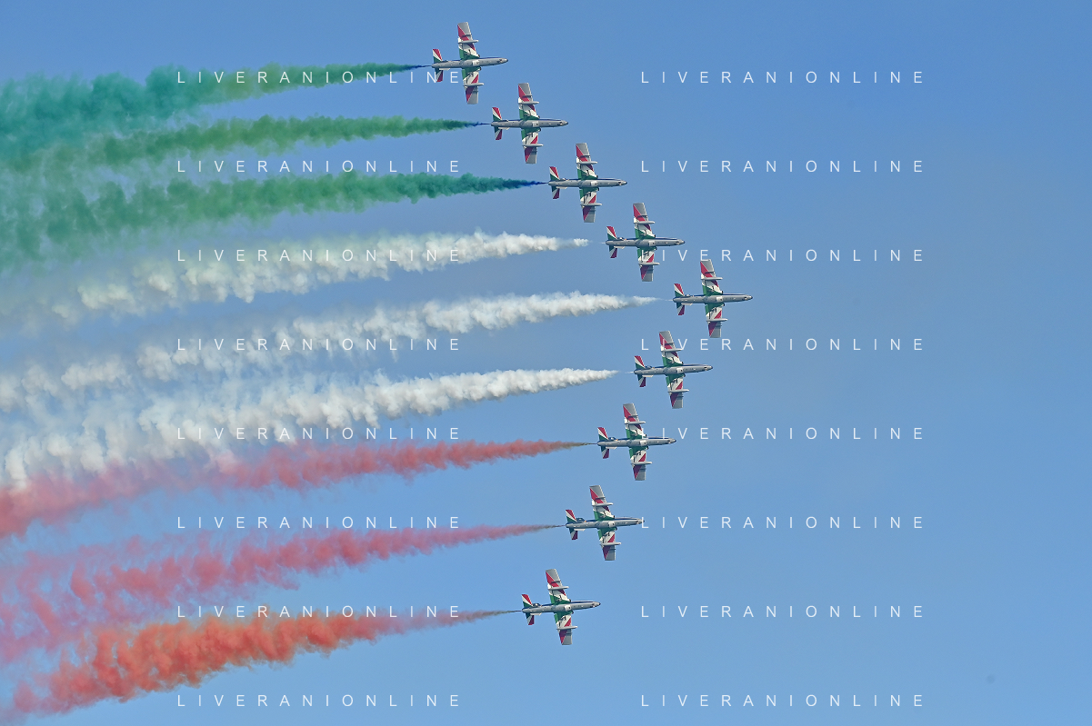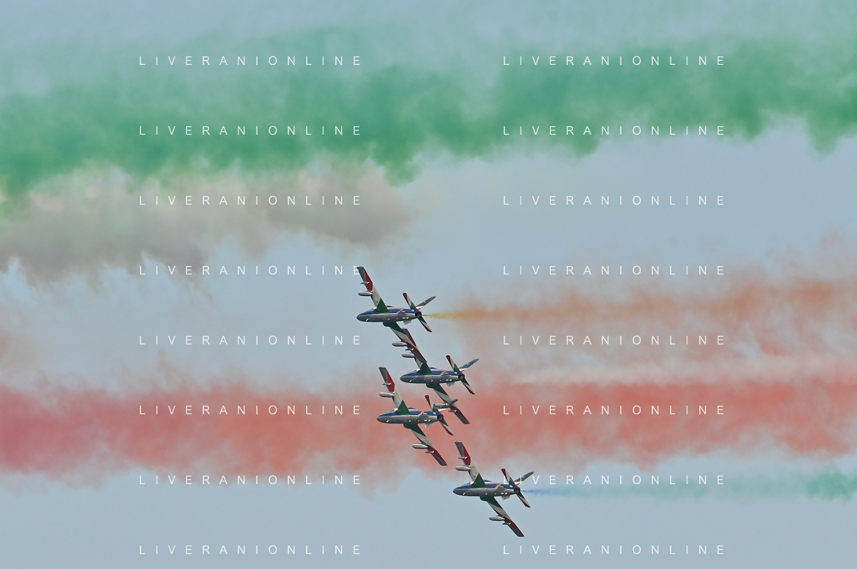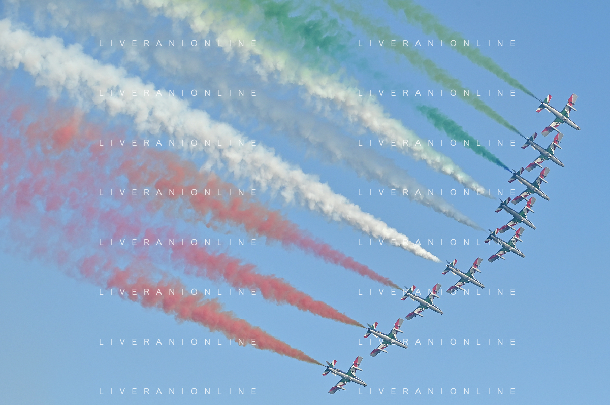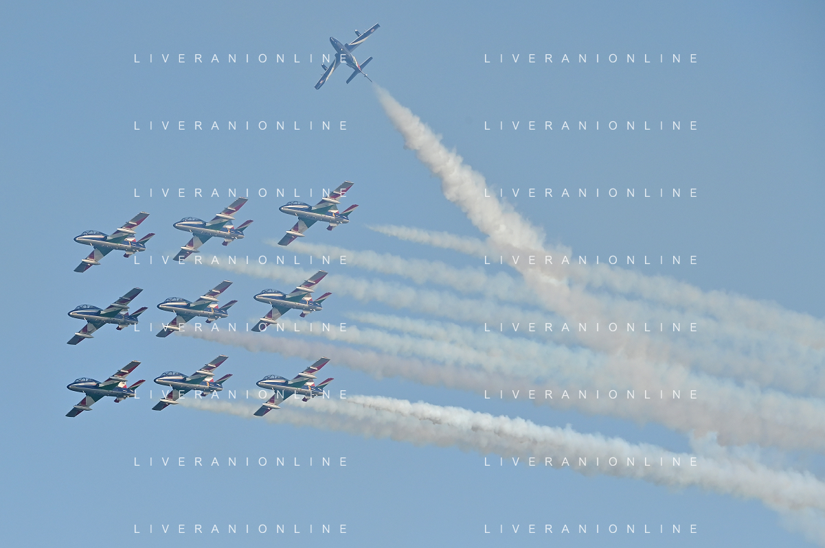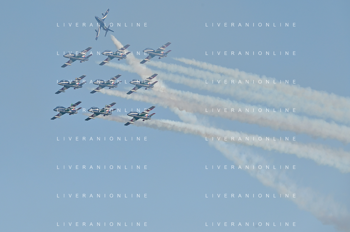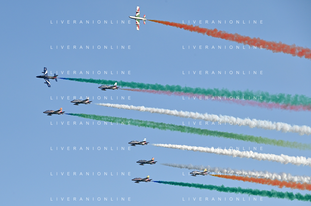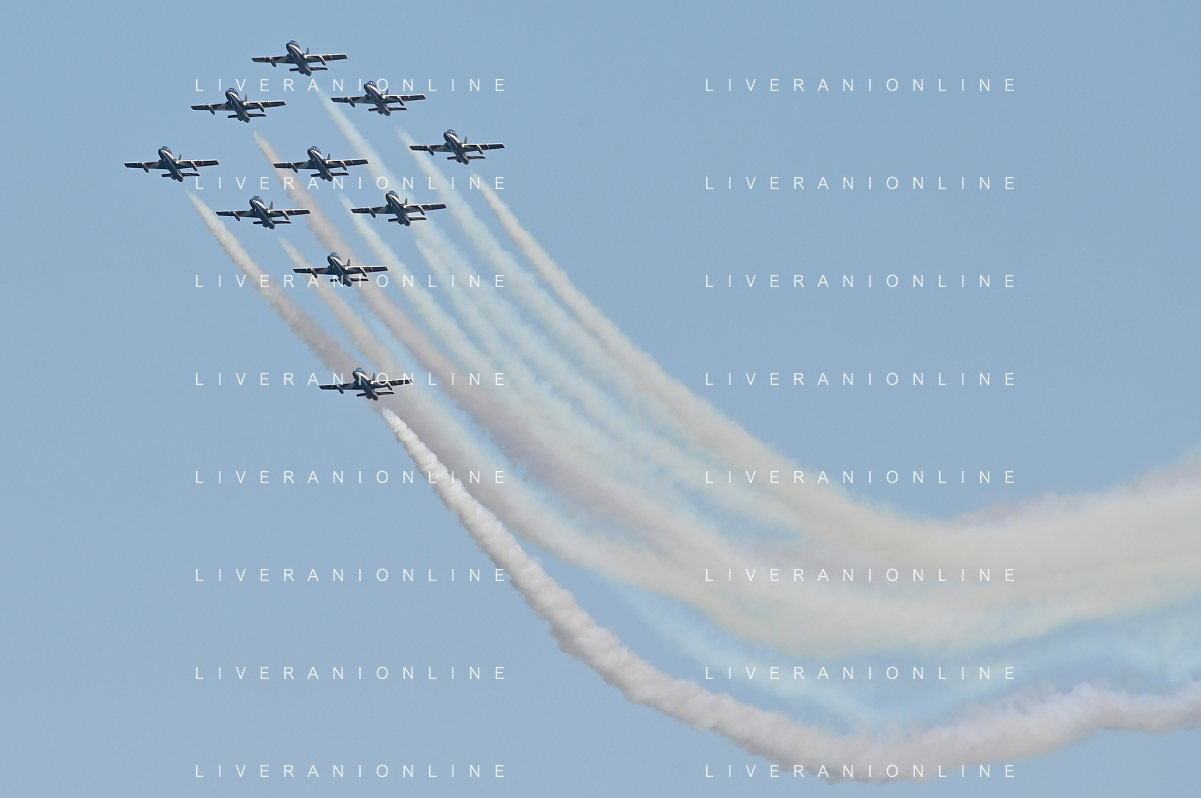 20-8-2023. Esibizione Aerei Frecce Tricolore Italia, presso lungomare Poetto di Cagliari, in occssione 100 anni Aeronautica Militare Italiana. Foto Salvatore Moi/Agenzia Aldo Liverani s.a.s. Nella foto: Aerei Frecce Tricolore Italia.