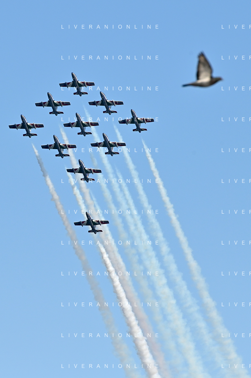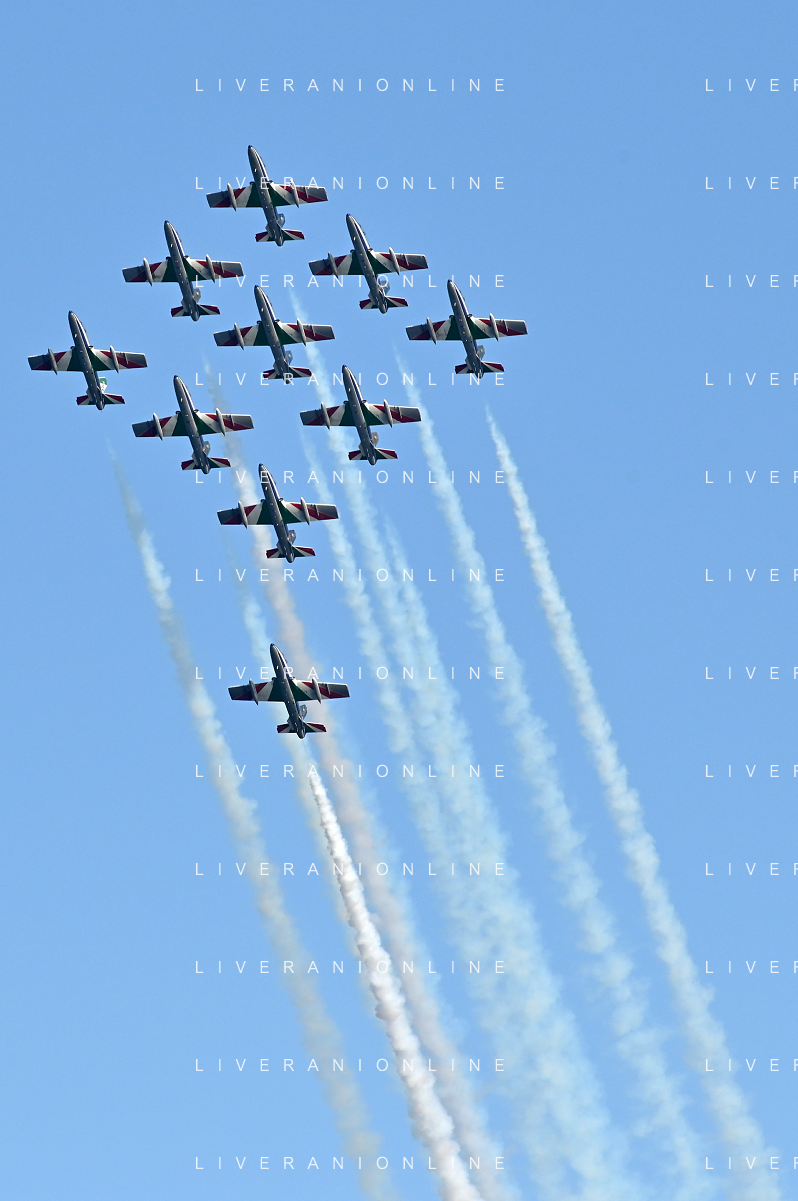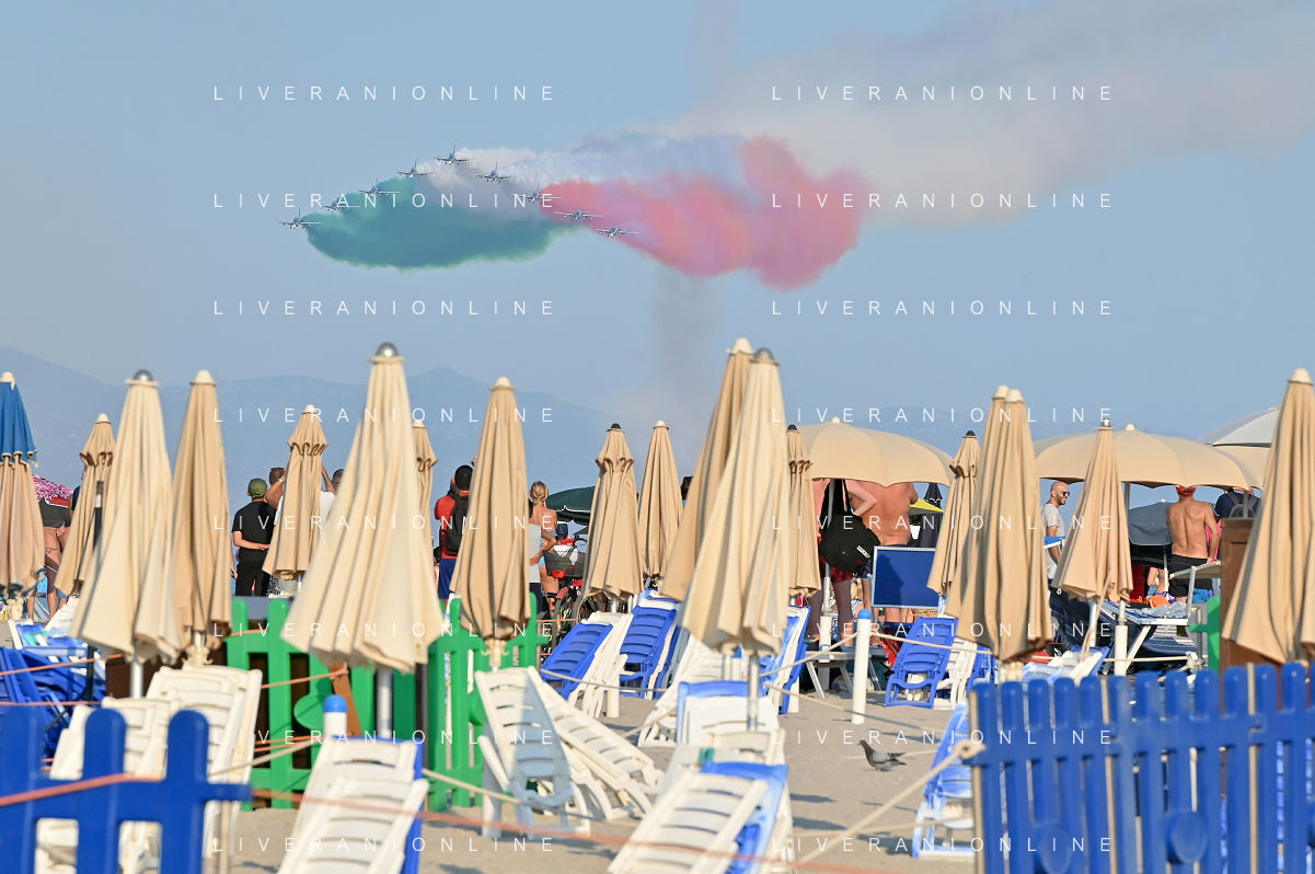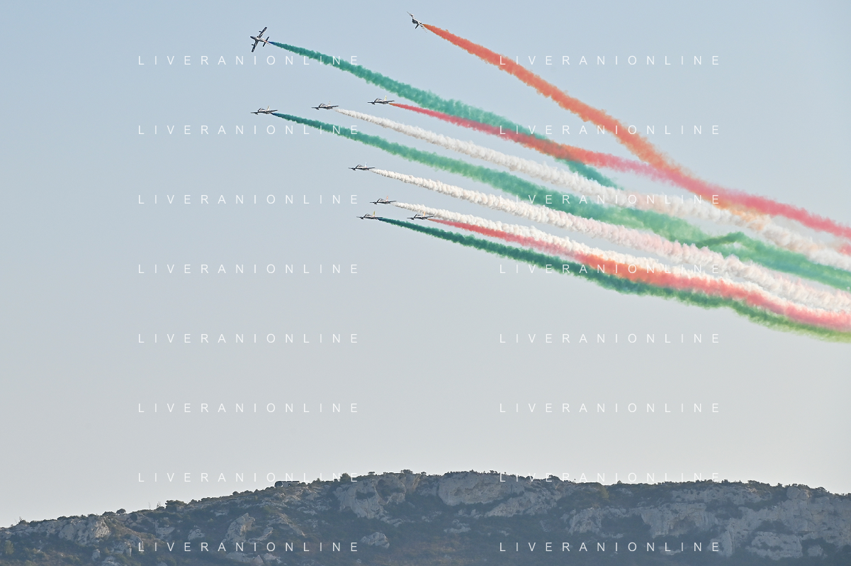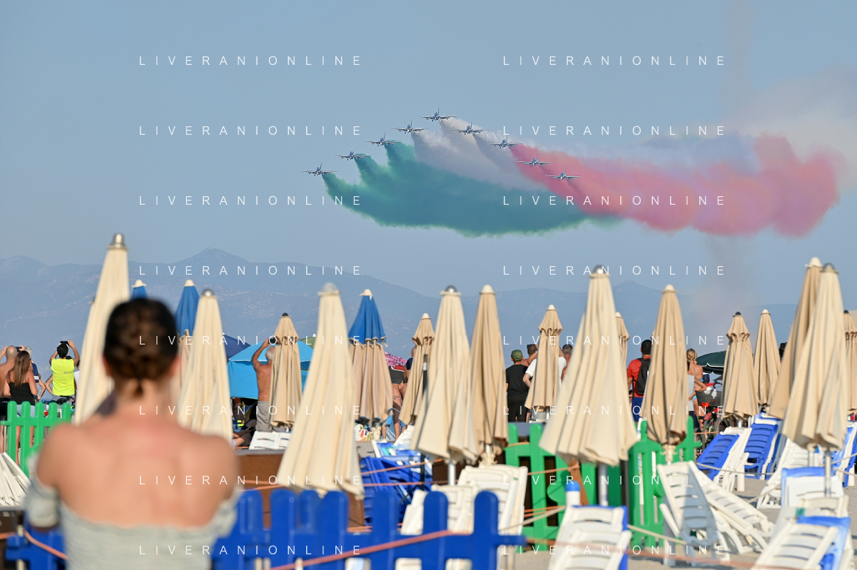 20-8-2023. Esibizione Aerei Frecce Tricolore Italia, presso lungomare Poetto di Cagliari