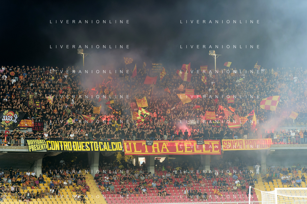 Supporters of US Lecce during the Italian soccer Serie A match US Lecce vs SS Lazio on August 20, 2023 at Via del Mare Stadium in Lecce, Italy. Photo by Emmanuele Mastrodonato/ag. Aldo Liverani sas
