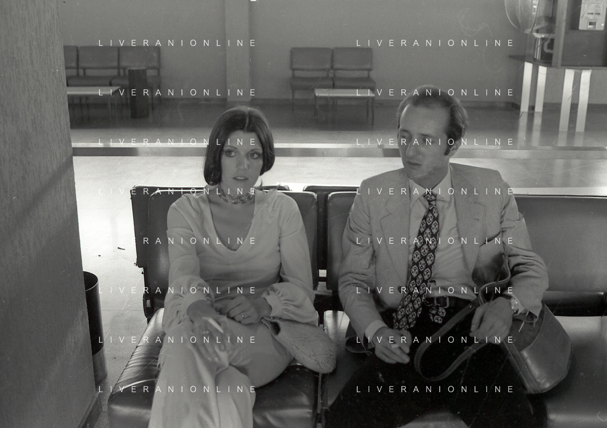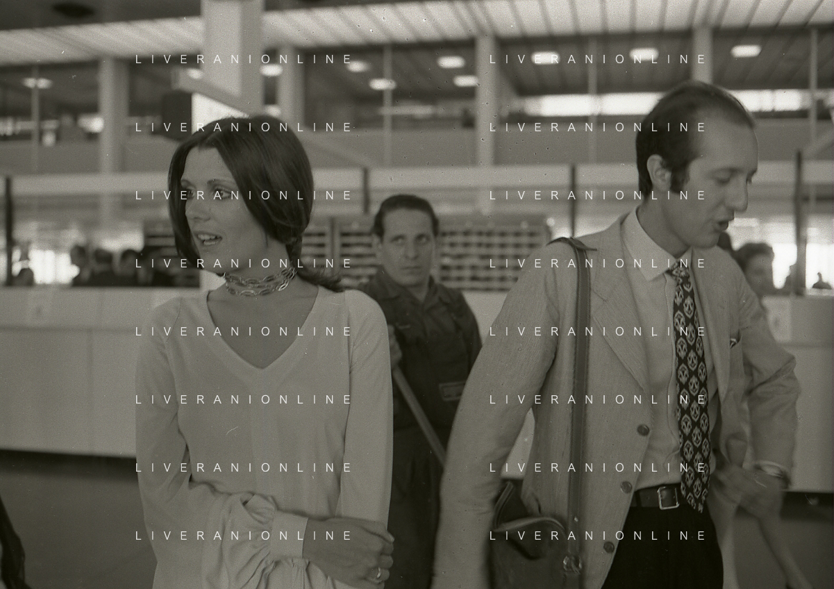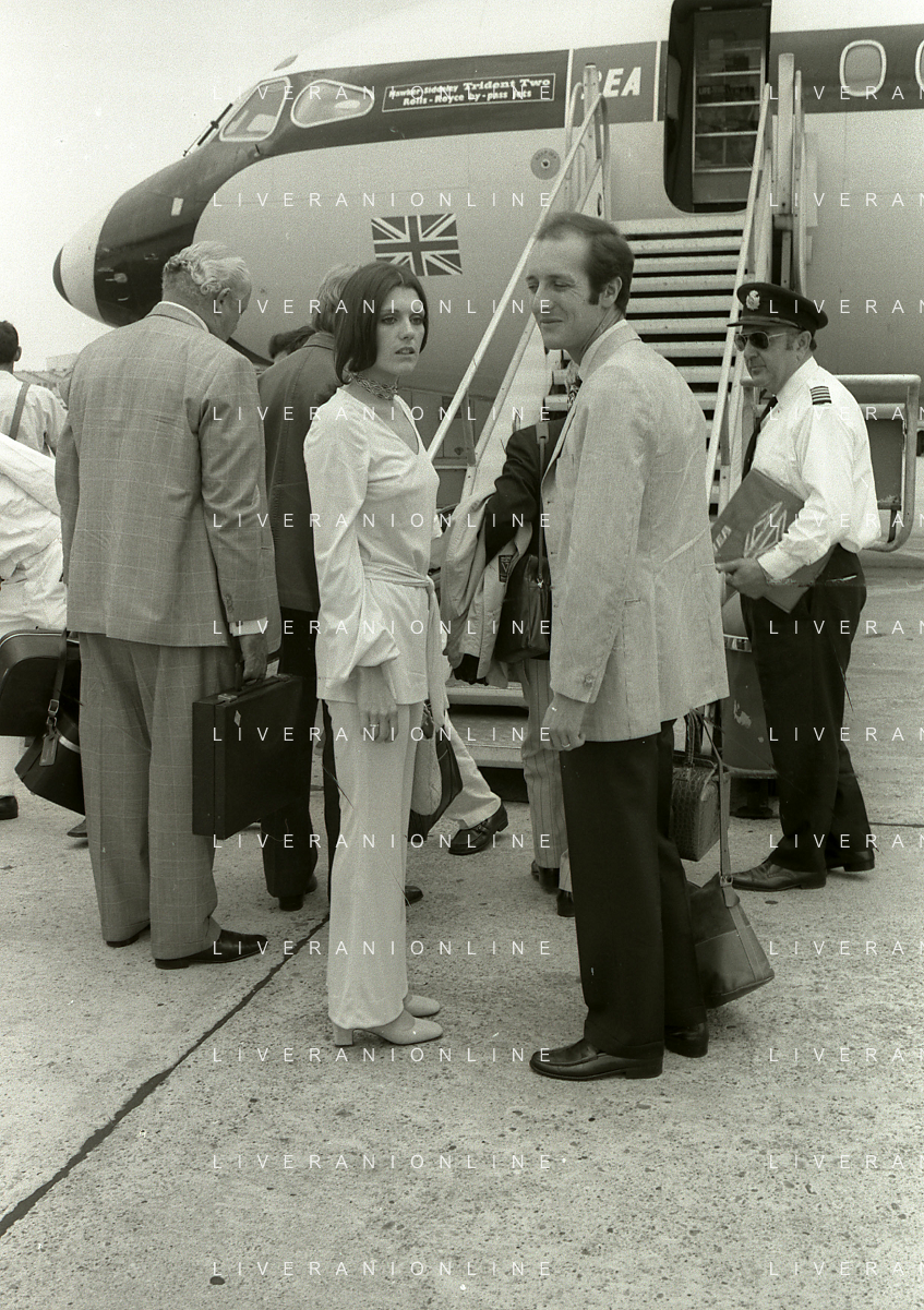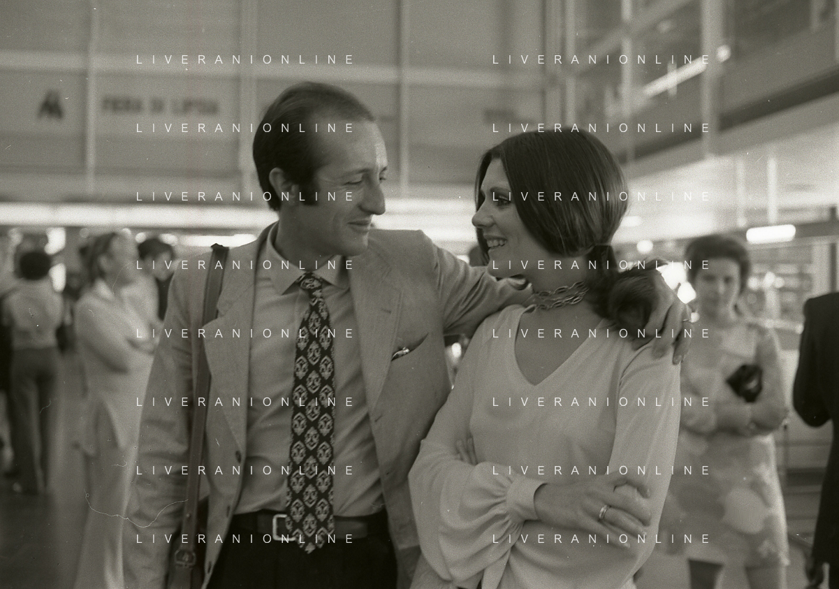 NEG-RETROSPETTIVA CATERINA CASELLI CANTANTE NELLA FOTO CATERINA CASELLI A LINATE IN PARTENZA DOPO LE NOZZE NELL'ANNO 1970 FOTO GINO BALDAN-AG ALDO LIVERANI SAS