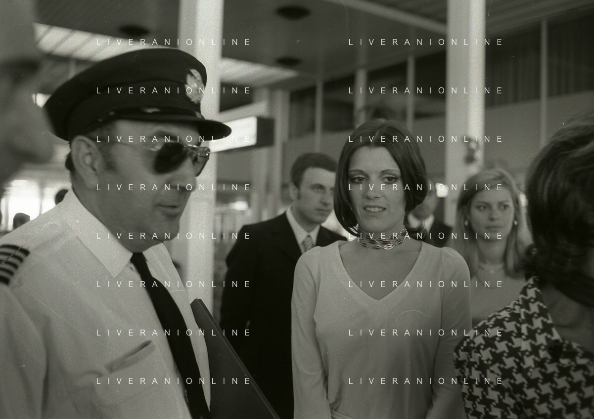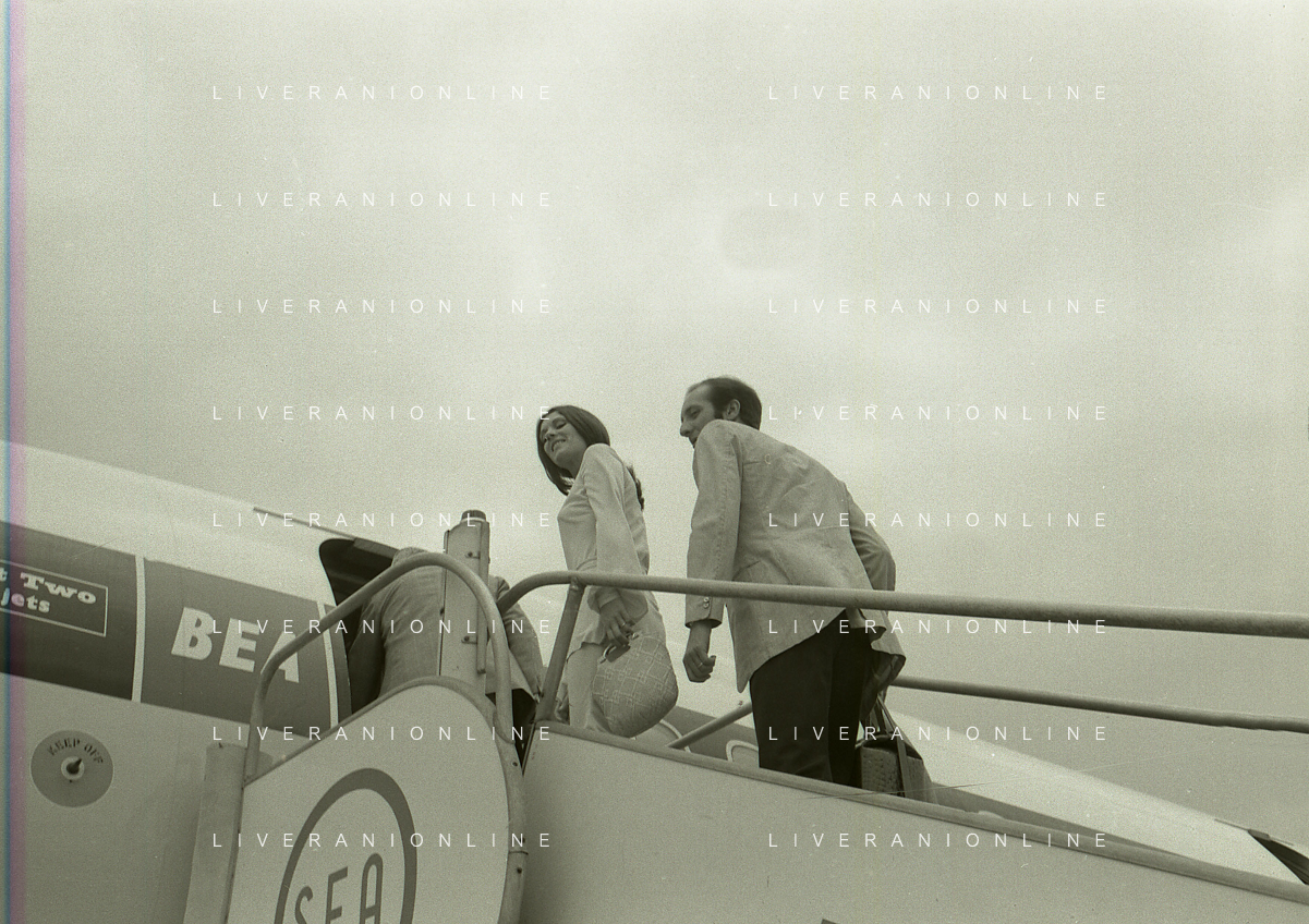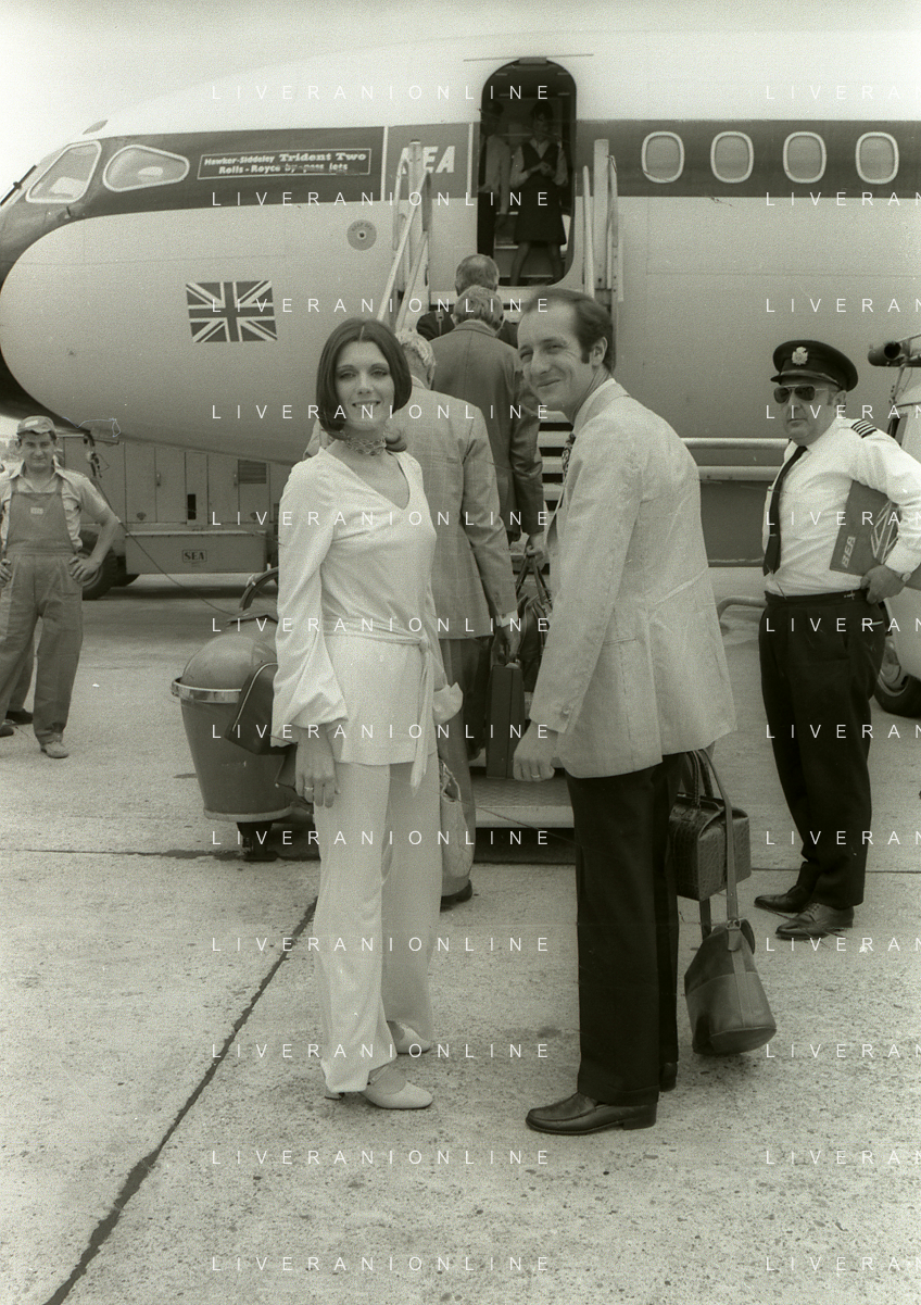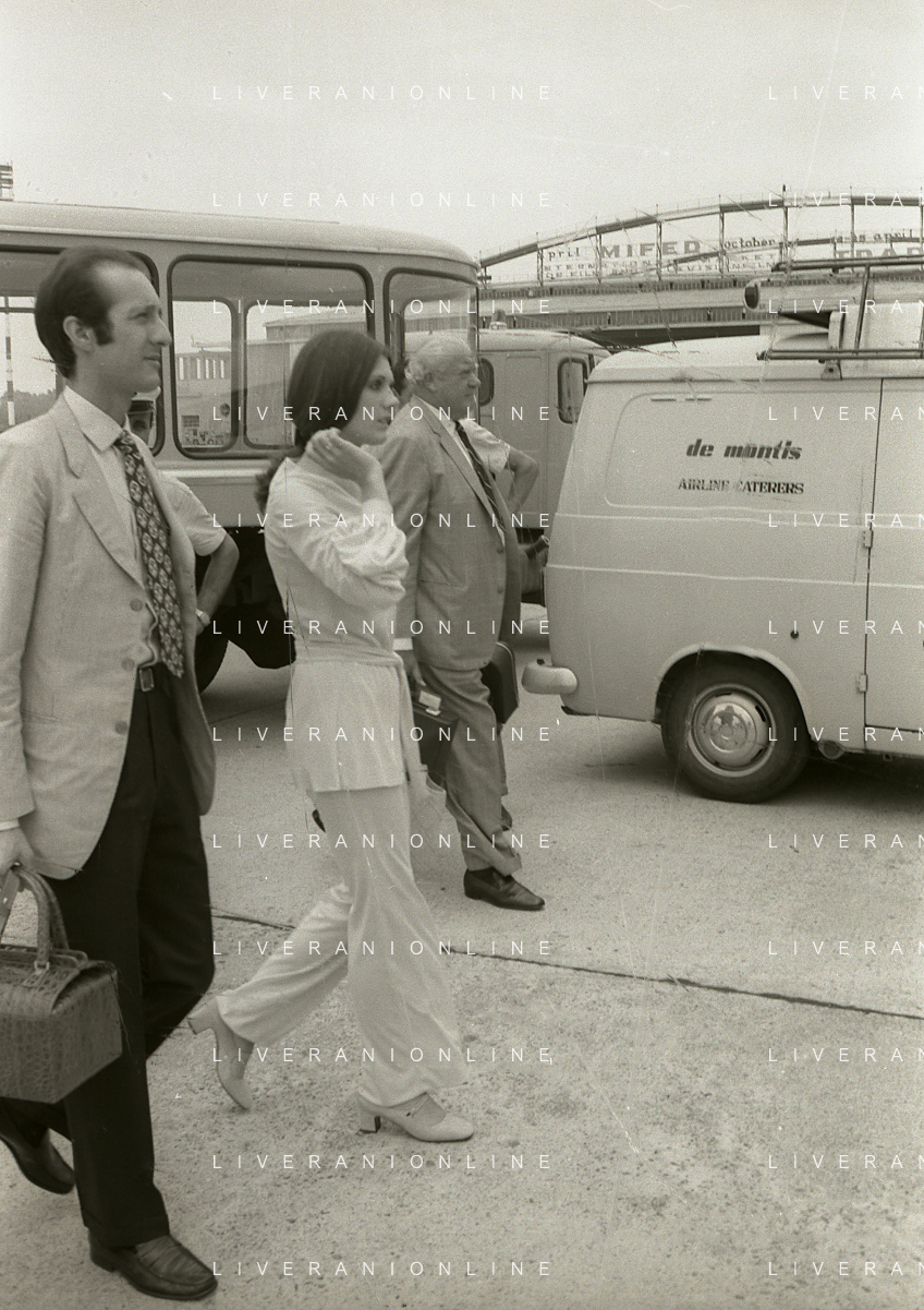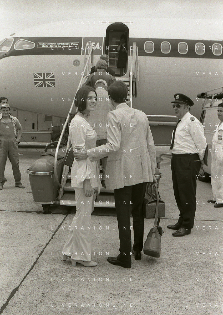 NEG-RETROSPETTIVA CATERINA CASELLI CANTANTE NELLA FOTO CATERINA CASELLI A LINATE IN PARTENZA DOPO LE NOZZE NELL'ANNO 1970 FOTO GINO BALDAN-AG ALDO LIVERANI SAS
