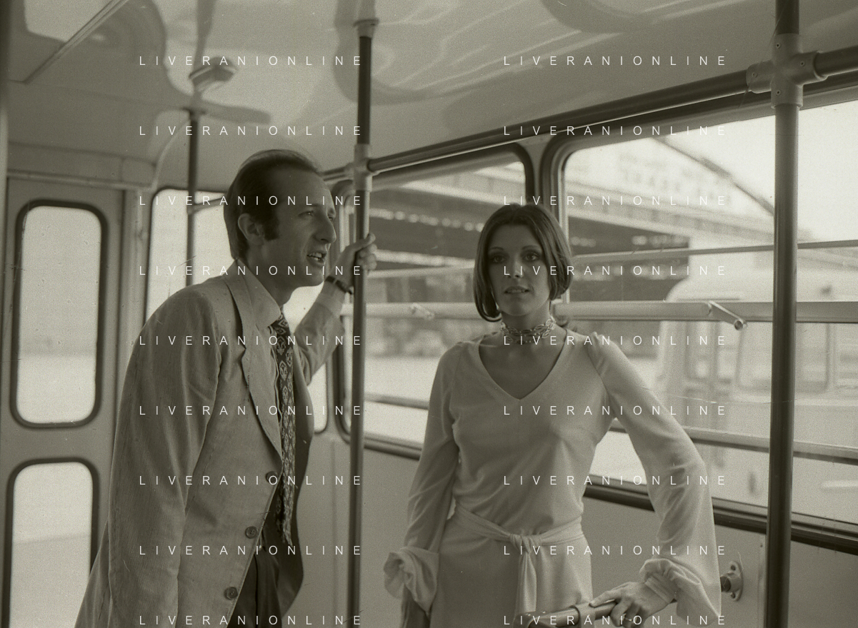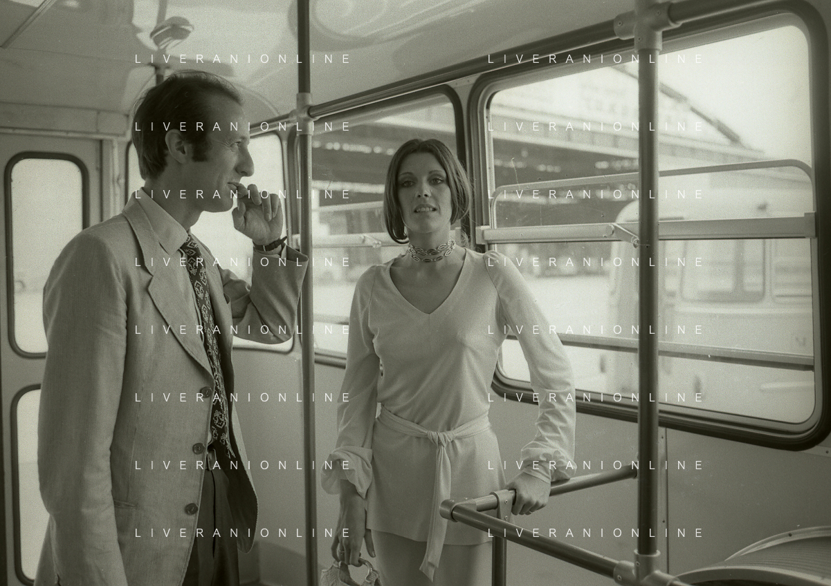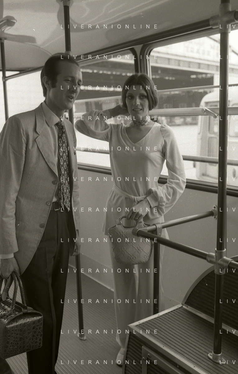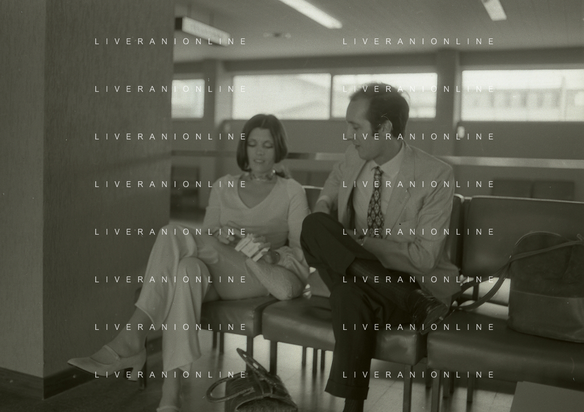 NEG-RETROSPETTIVA CATERINA CASELLI CANTANTE NELLA FOTO CATERINA CASELLI A LINATE IN PARTENZA DOPO LE NOZZE NELL'ANNO 1970 FOTO GINO BALDAN-AG ALDO LIVERANI SAS