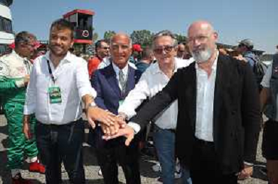 IMOLA 26 08 2023 AUTODROMO ENZO E DINO FERRARI "MINARDI DAY" NELLA FOTO DA SINISTRA SINDACO MARCO PANIERI PRESIDENTE ACI ANGELO STICCHI DAMIANI PRESIDENTE DELL'AUTODROMO ENZO E DINO FERRARI GIANCARLO MINARDI E PRESIDENTE DELLA REGIONE EMILIA ROMAGNA STEFANO BONACCNI FOTO GIANNI SANNA-AG ALDO LIVERANI SAS