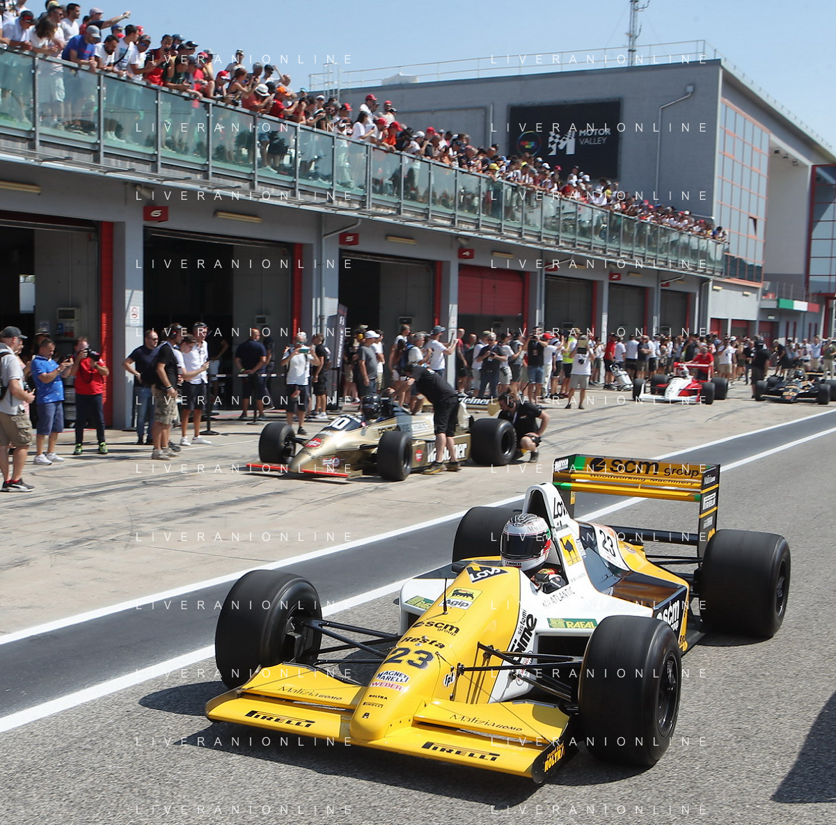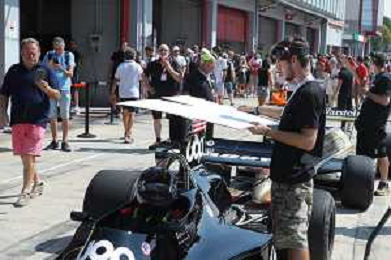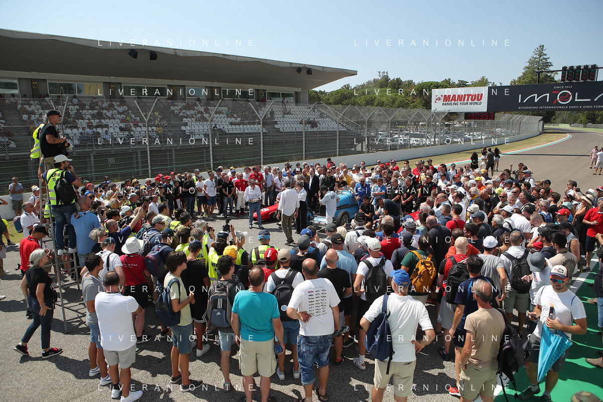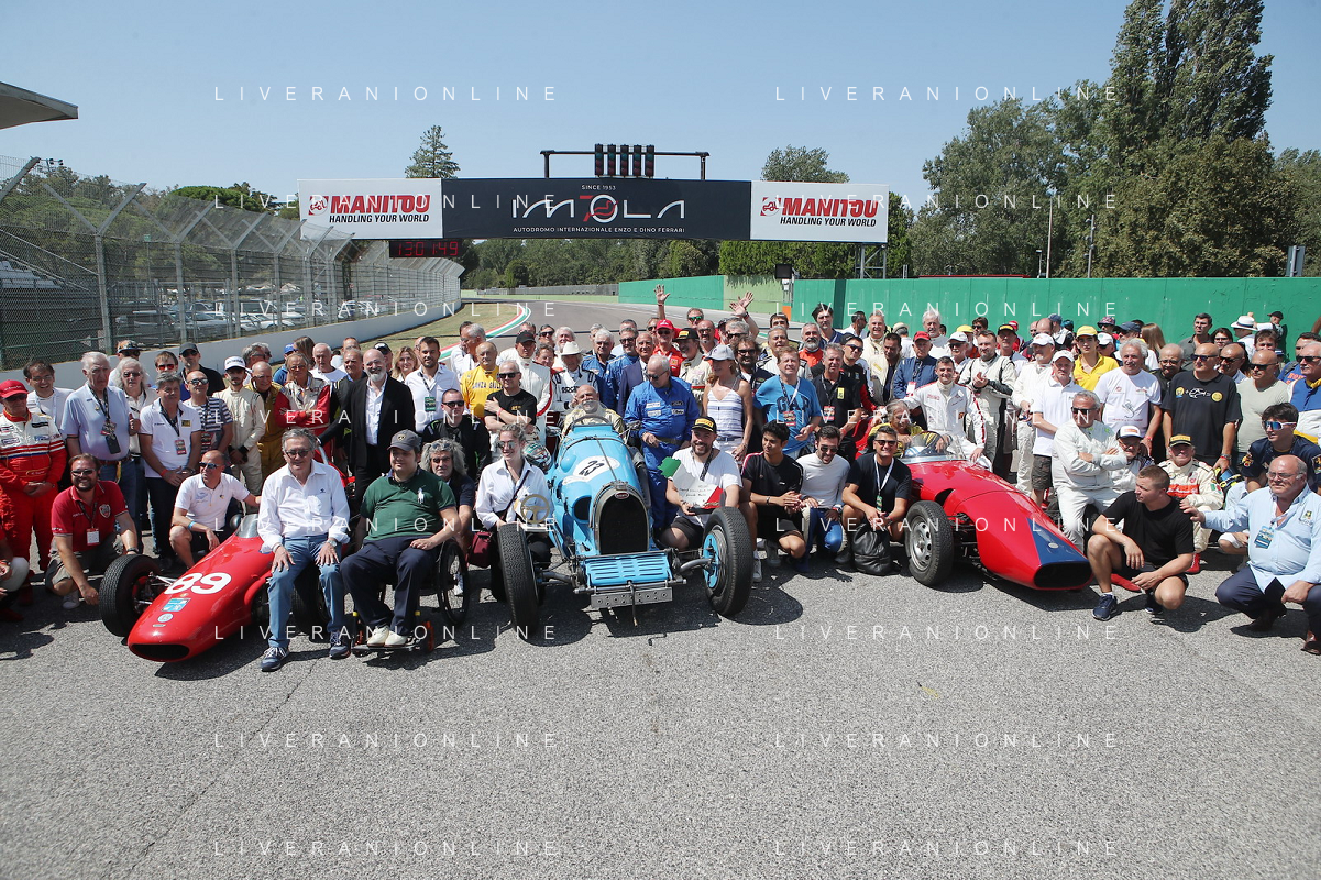 IMOLA 26 08 2023 AUTODROMO ENZO E DINO FERRARI "MINARDI DAY" NELLA FOTO GIANCARLO MINARDI,PRESIDENTE DELLA REGIONE EMILIA ROMAGNA STEFANO BONACCINI SINDACO MARCO PANIERI NIPOTE DI MINARDI ELENA E PILOTI FOTO GIANNI SANNA-AG ALDO LIVERANI SAS