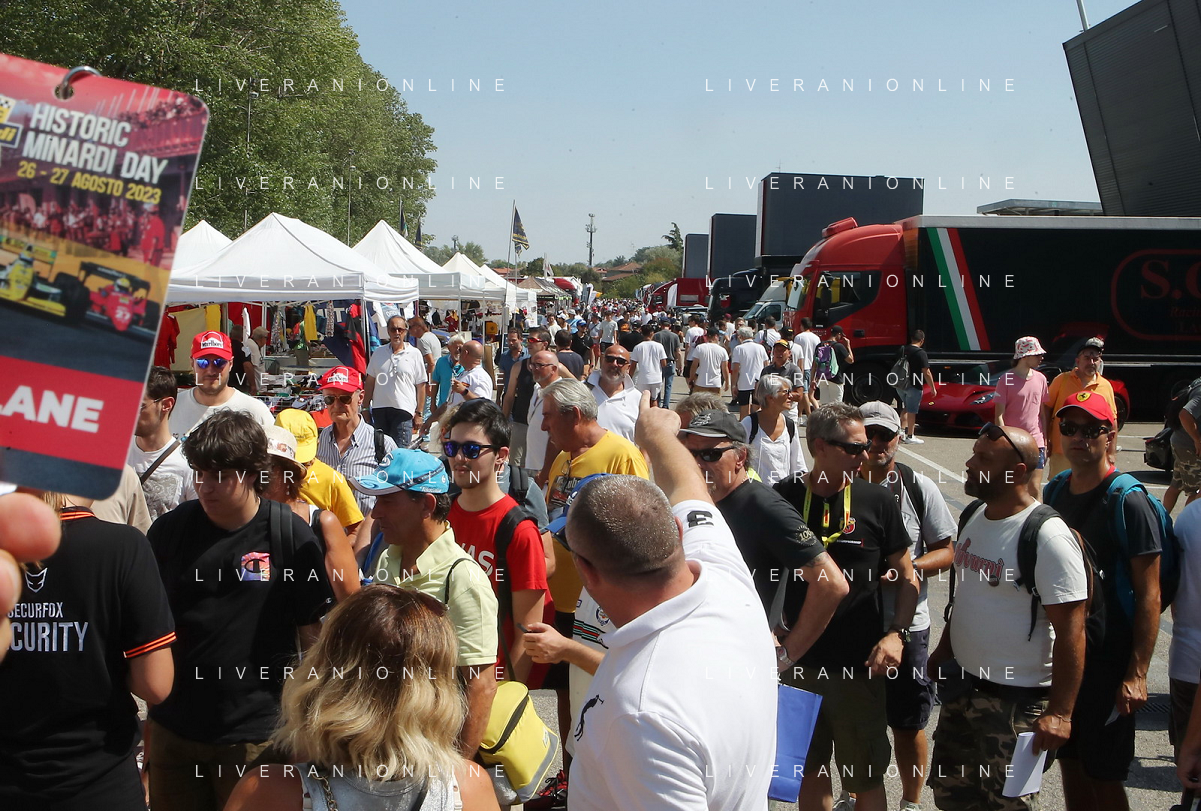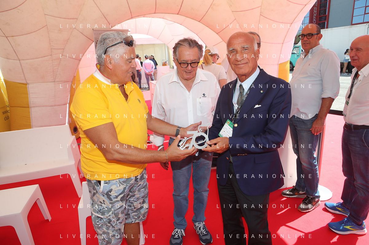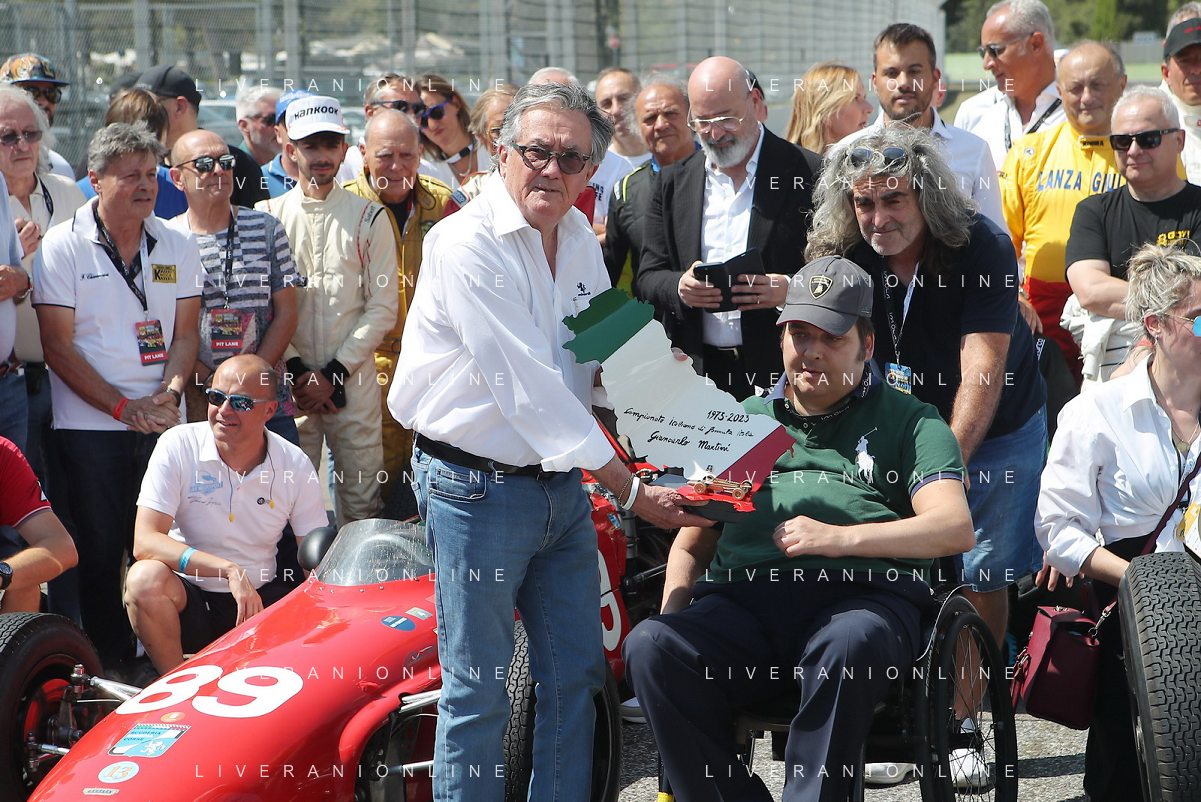IMOLA 26 08 2023 AUTODROMO ENZO E DINO FERRARI "MINARDI DAY" NELLA FOTO ARTISTA BETTINI MAURIZIO GIANCARLO MINARDI E ANGELO STICCHI DAMIANO PRESIDENTE ACI FOTO GIANNI SANNA-AG ALDO LIVERANI SAS