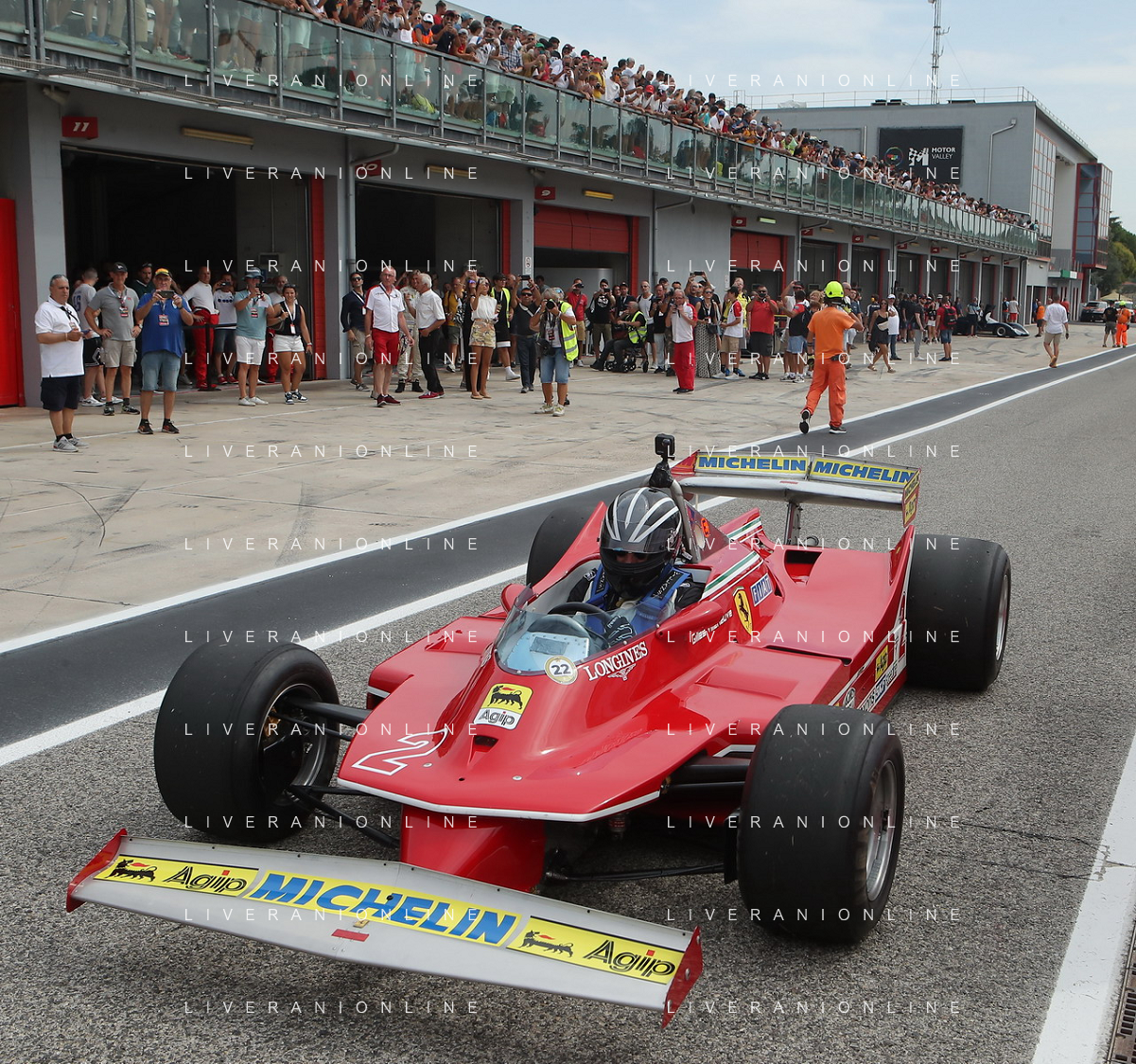IMOLA 27 08 2023 AUTODROMO ENZO E DINO FERRARI MINARDI DAY NELLA FOTO LA FERRARI DI GILLES VILLENEUVE 1980 IN PISTA PER MINARDI DAY FOTO GIANNI SANNA-AG ALDO LIVERANI SAS