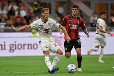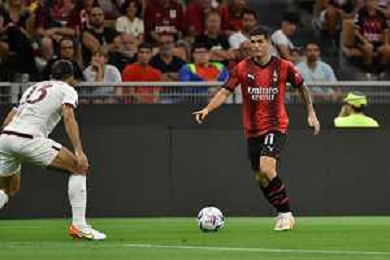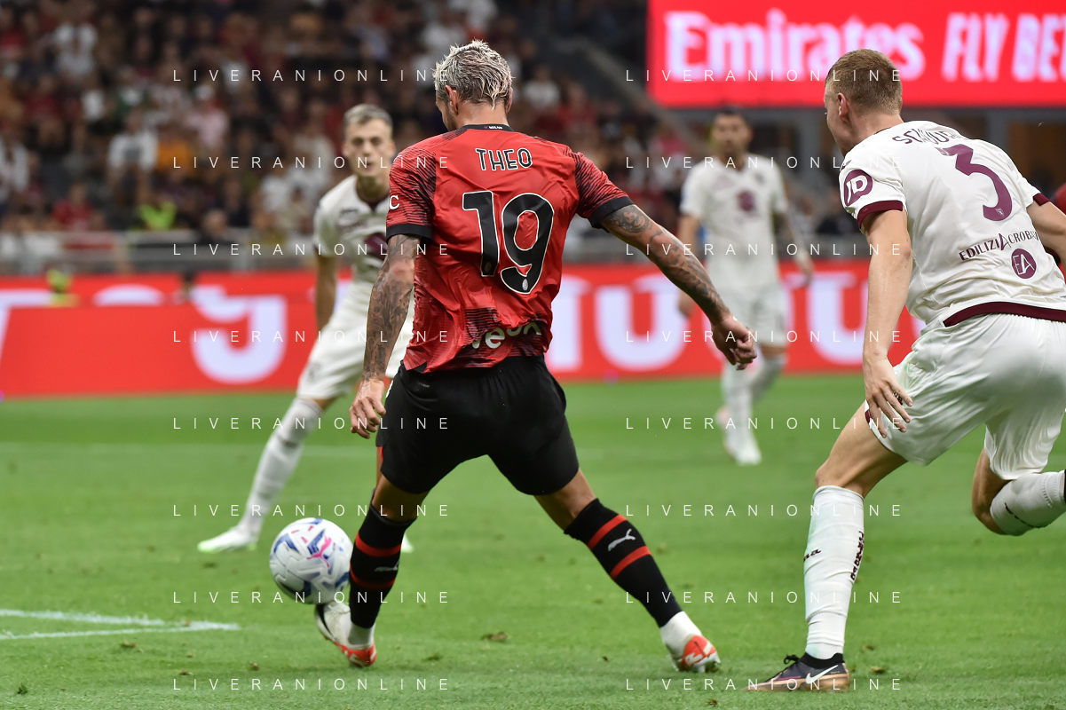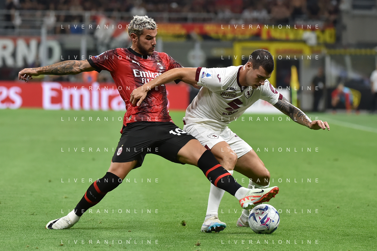 Milan vs Torino nella foto Theo Hernandez (Milan) e Pietro Pellegri (Torino) Milano 26-08-2023 Stadio Giuseppe Meazza - San Siro Campionato Serie A TIM - 2a giornata foto Roberto Garavaglia/ag. Aldo Liverani sas