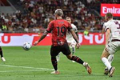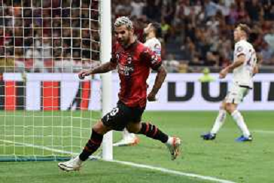 Milan vs Torino nella foto Theo Hernandez (Milan) segna il gol del 3 a 1 Milano 26-08-2023 Stadio Giuseppe Meazza - San Siro Campionato Serie A TIM - 2a giornata foto Roberto Garavaglia/ag. Aldo Liverani sas