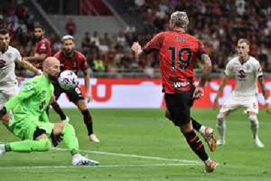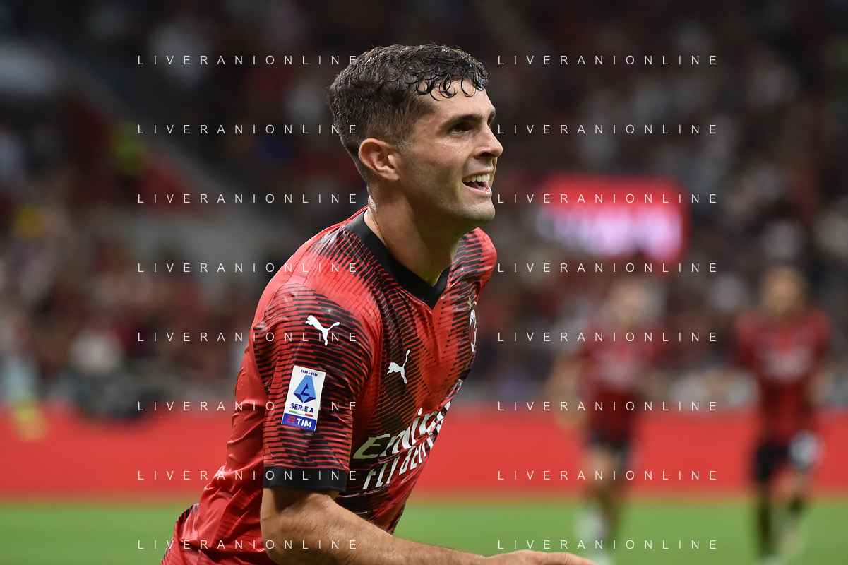 Milan vs Torino nella foto Christian Mate Pulisic (Milan) segna il gol dell'1 a 0 Milano 26-08-2023 Stadio Giuseppe Meazza - San Siro Campionato Serie A TIM - 2a giornata foto Roberto Garavaglia/ag. Aldo Liverani sas