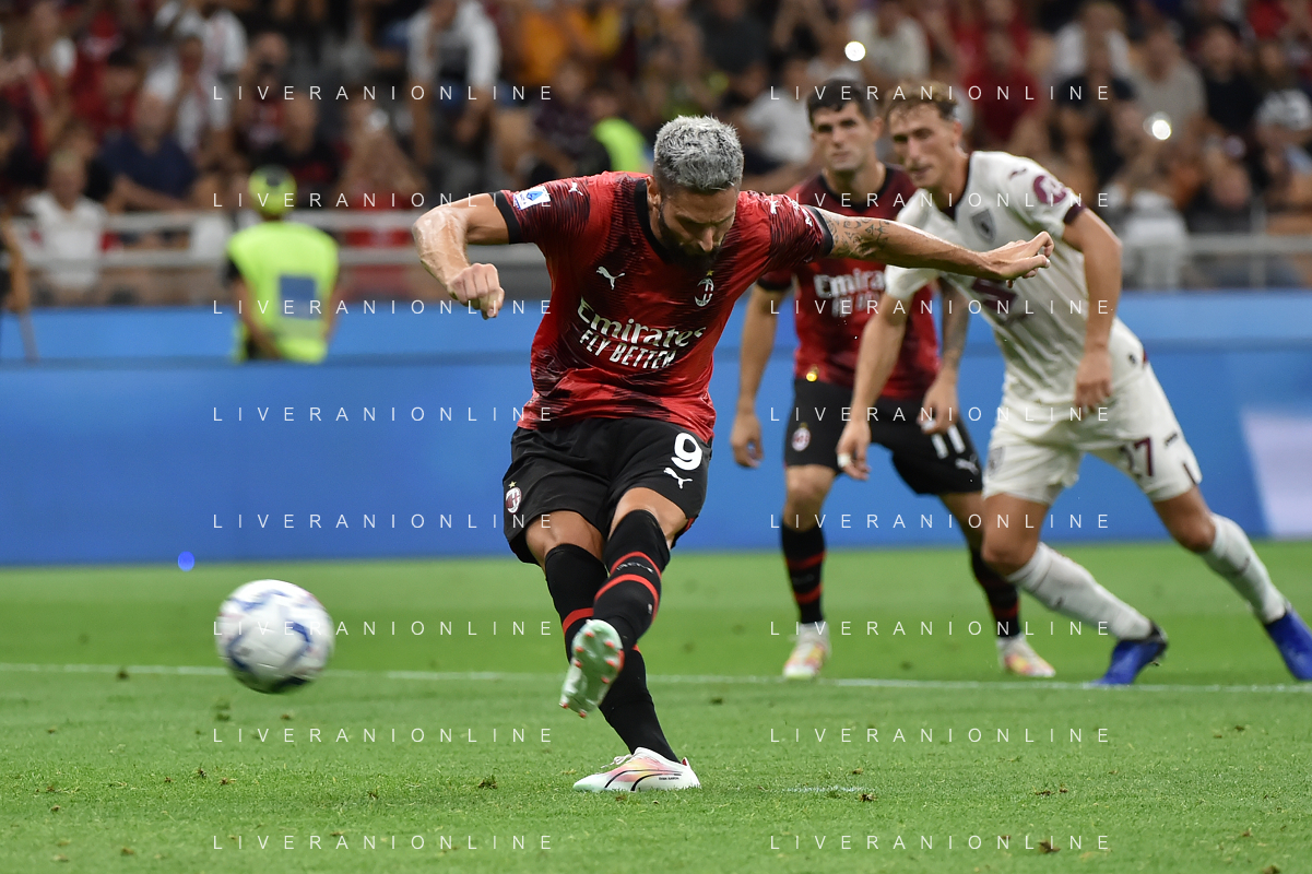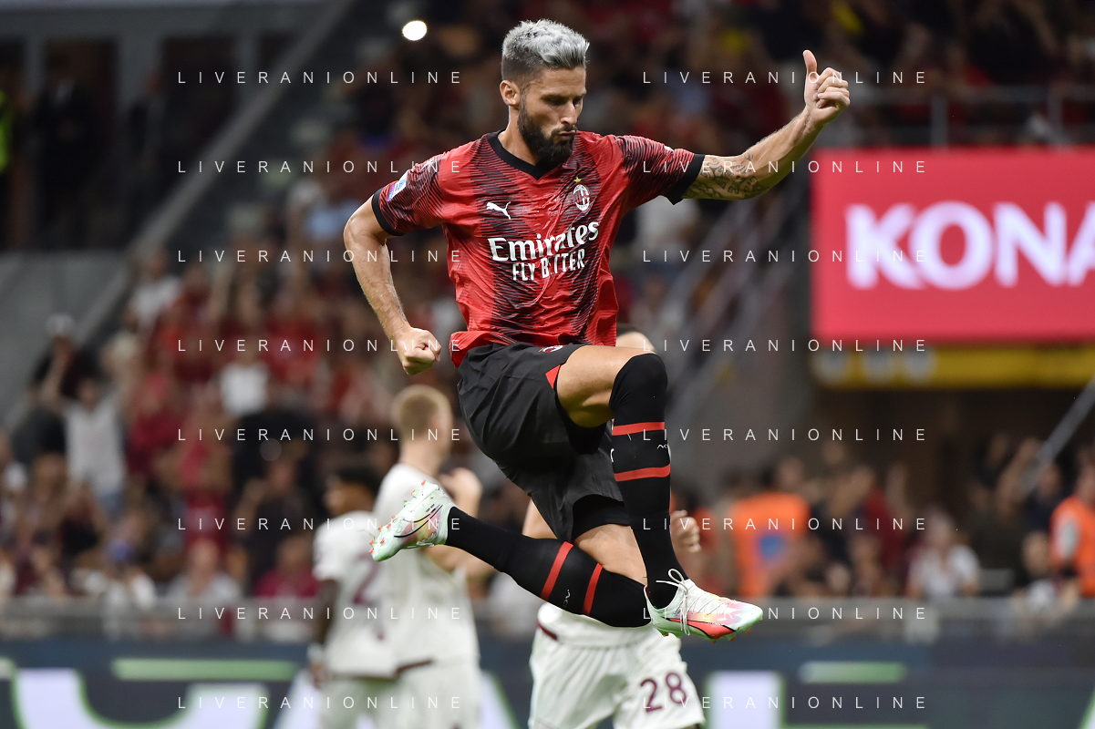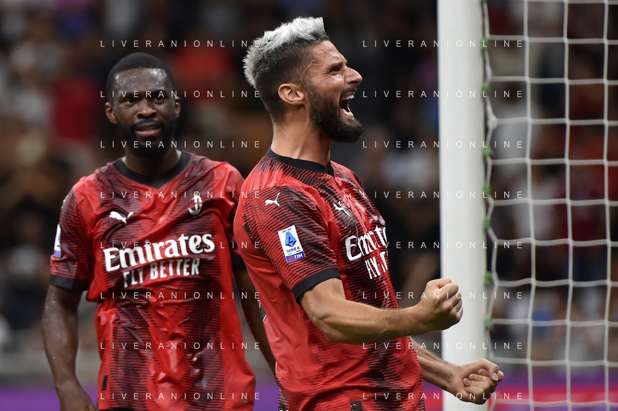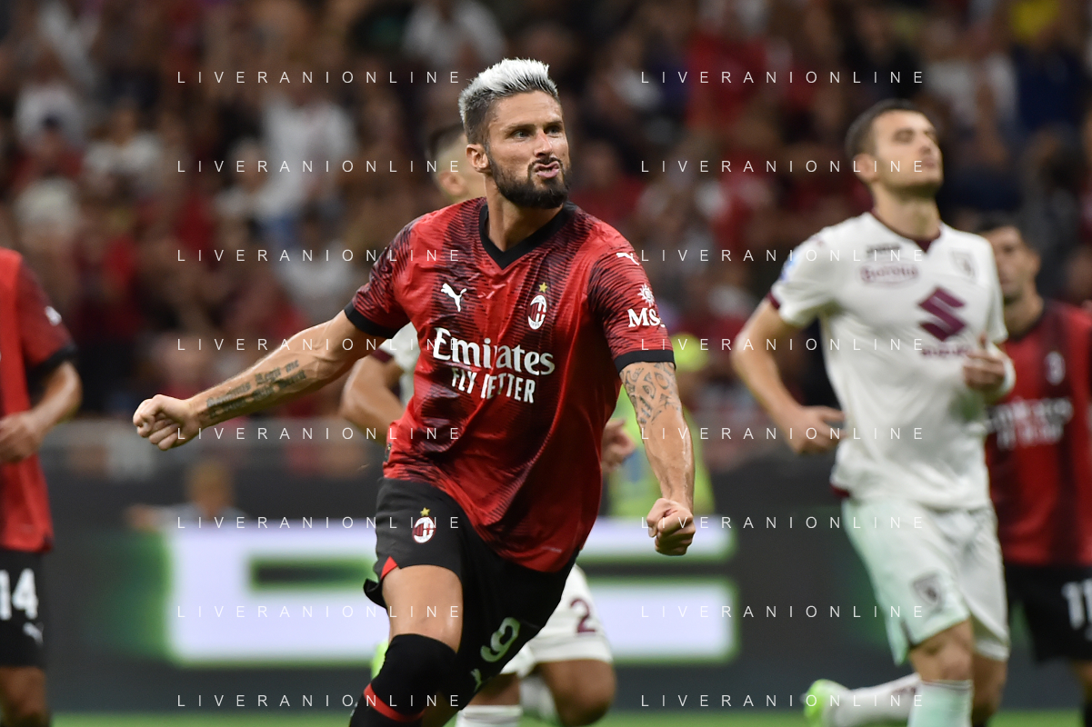 Milan vs Torino nella foto Olivier Giroud (Milan) segna il gol del 2 a 1 Milano 26-08-2023 Stadio Giuseppe Meazza - San Siro Campionato Serie A TIM - 2a giornata foto Roberto Garavaglia/ag. Aldo Liverani sas