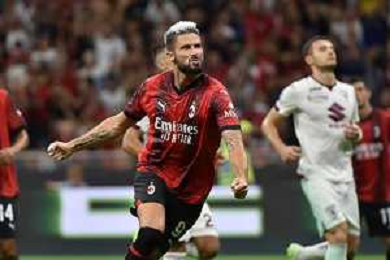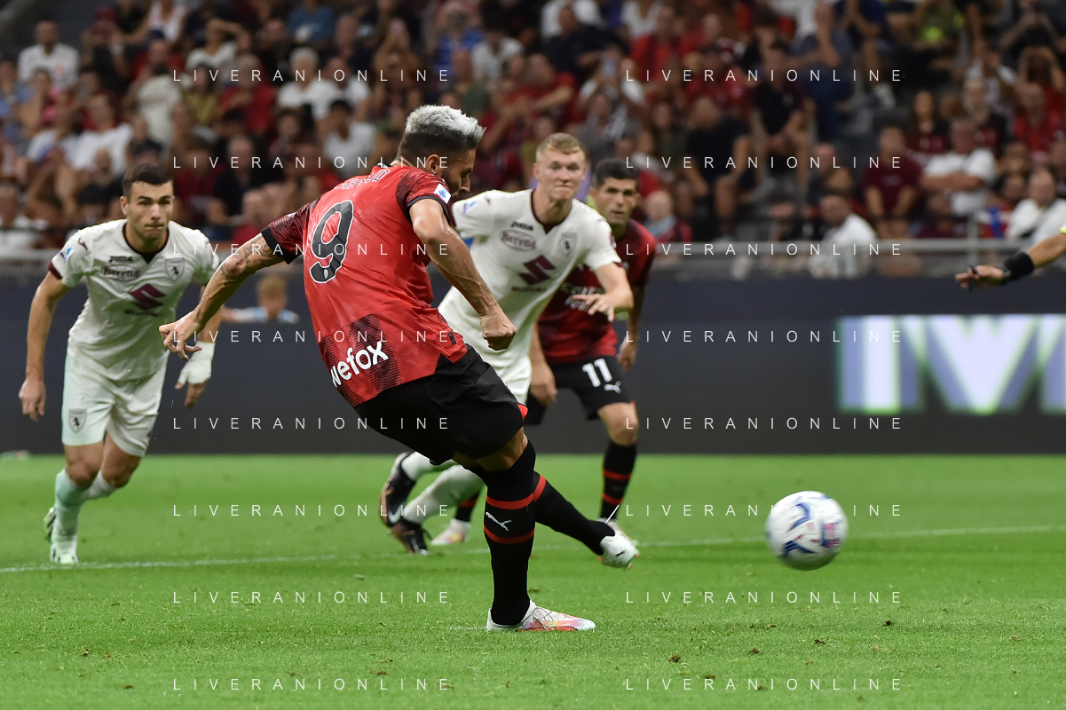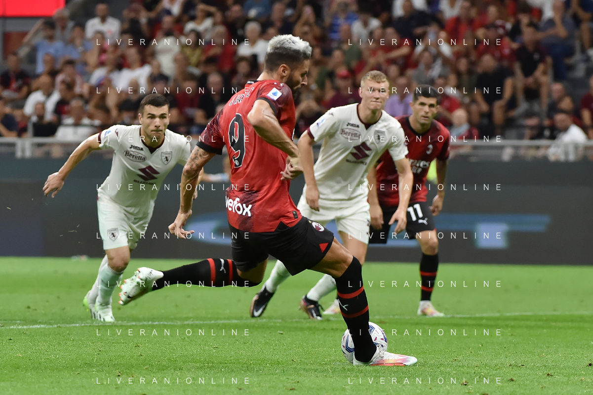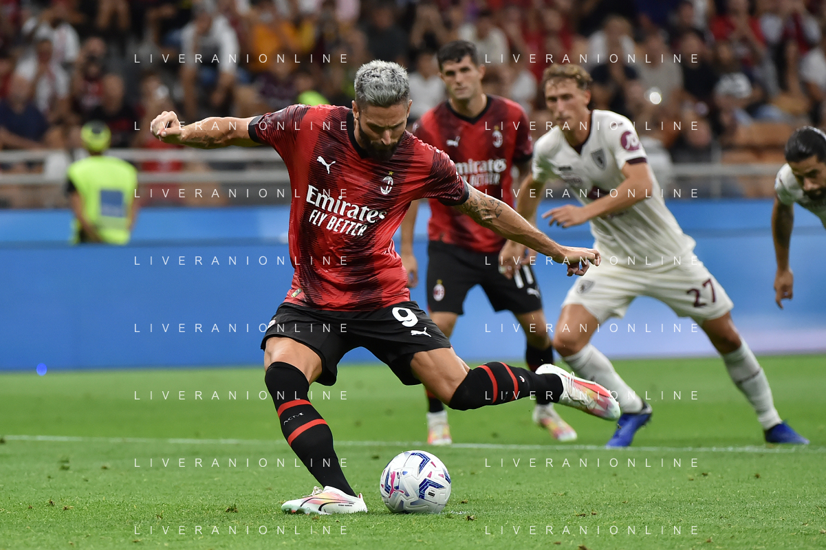 Milan vs Torino nella foto Olivier Giroud (Milan) segna il gol del 2 a 1 Milano 26-08-2023 Stadio Giuseppe Meazza - San Siro Campionato Serie A TIM - 2a giornata foto Roberto Garavaglia/ag. Aldo Liverani sas