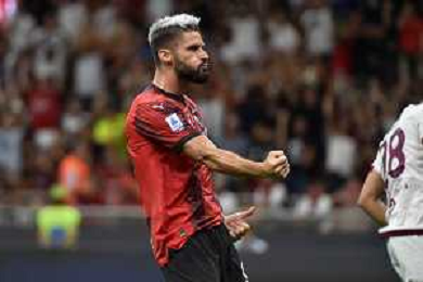 Milan vs Torino nella foto Olivier Giroud (Milan) segna il gol del 4 a 1 Milano 26-08-2023 Stadio Giuseppe Meazza - San Siro Campionato Serie A TIM - 2a giornata foto Roberto Garavaglia/ag. Aldo Liverani sas