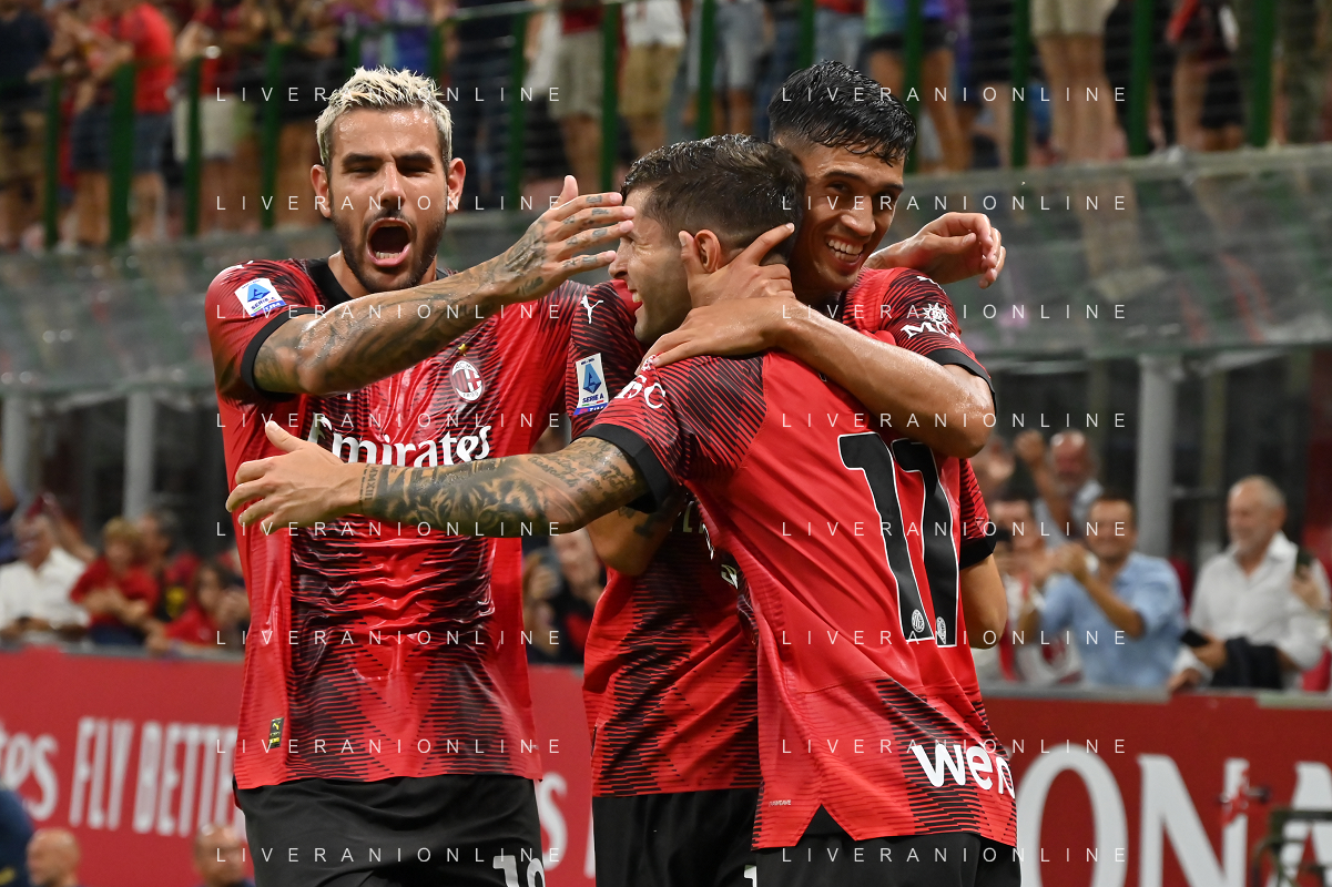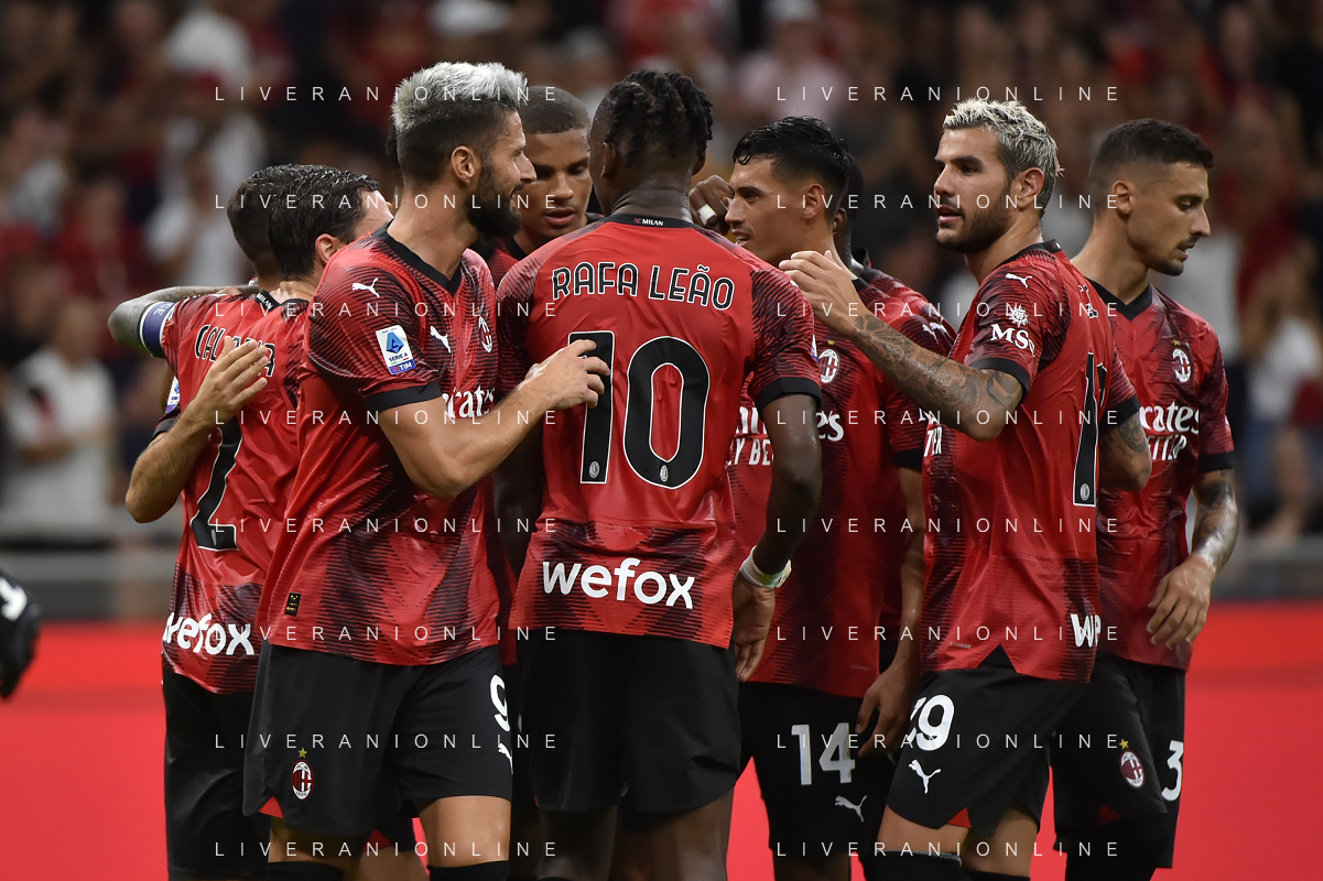 Milan vs Torino nella foto esultanza Milan dopo il gol dell'1 a 0 Milano 26-08-2023 Stadio Giuseppe Meazza - San Siro Campionato Serie A TIM - 2a giornata foto Roberto Garavaglia/ag. Aldo Liverani sas