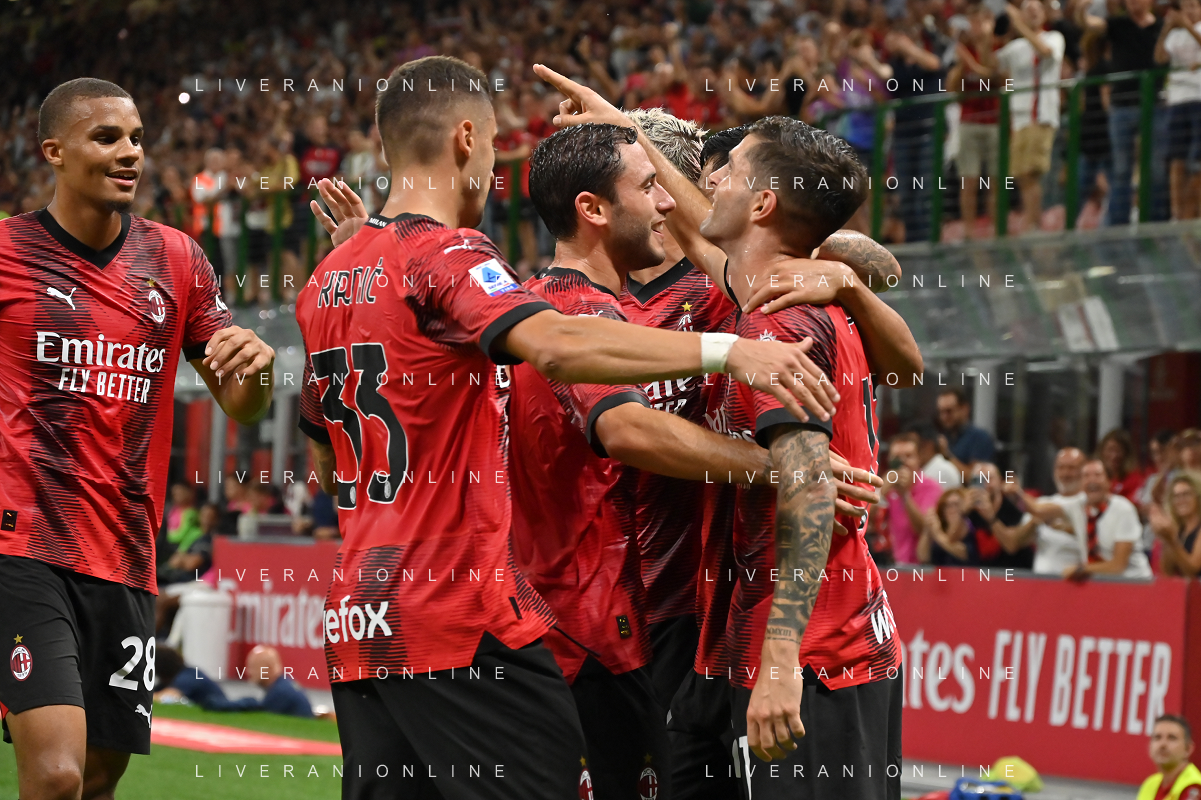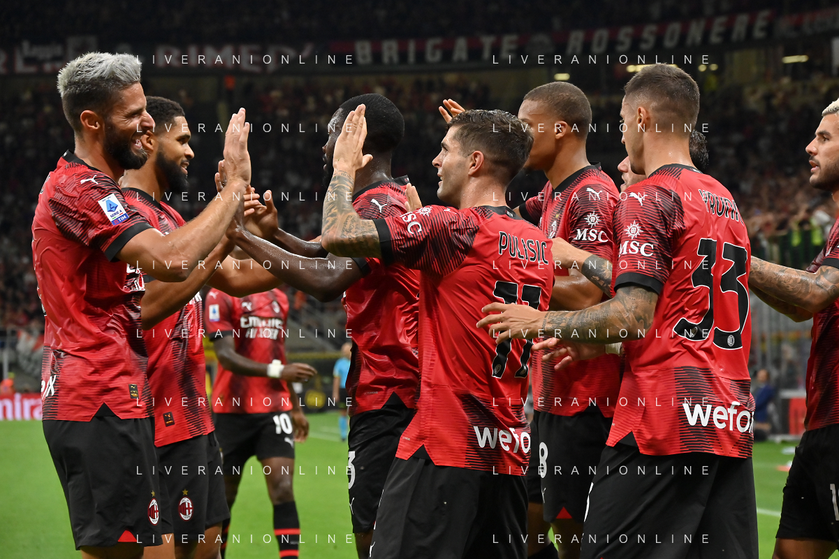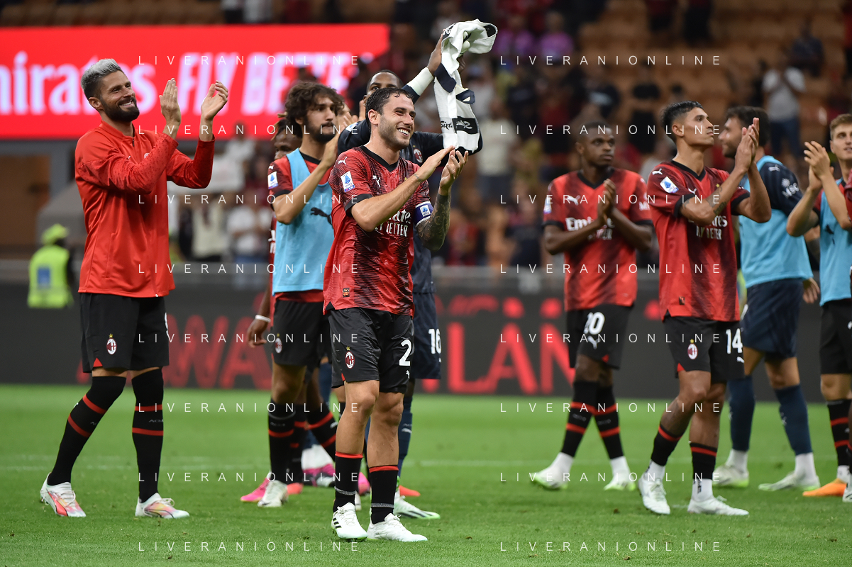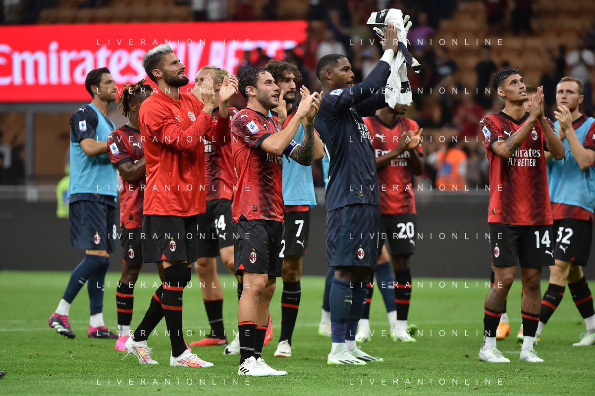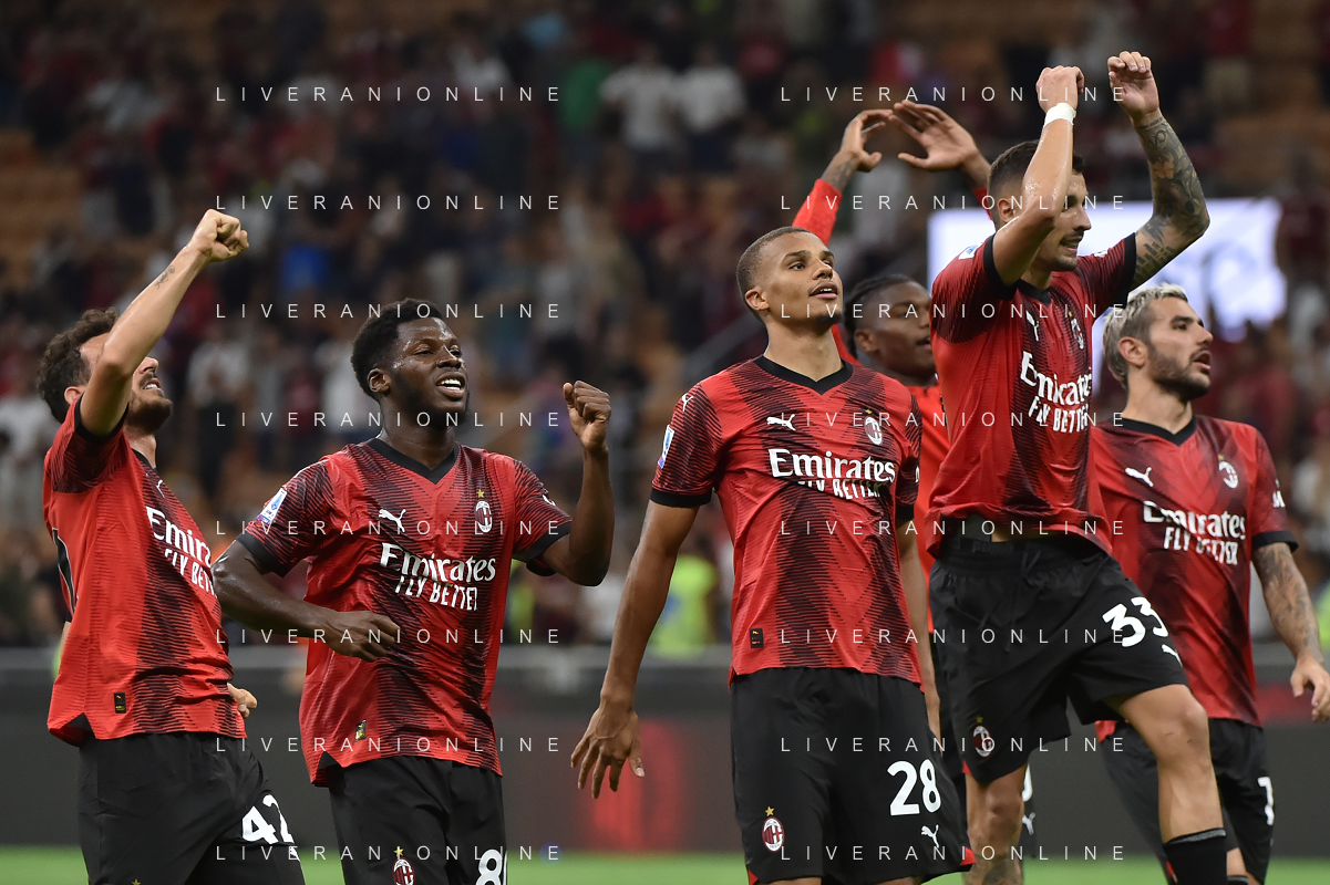 Milan vs Torino nella foto esultanza finale Milan Milano 26-08-2023 Stadio Giuseppe Meazza - San Siro Campionato Serie A TIM - 2a giornata foto Roberto Garavaglia/ag. Aldo Liverani sas