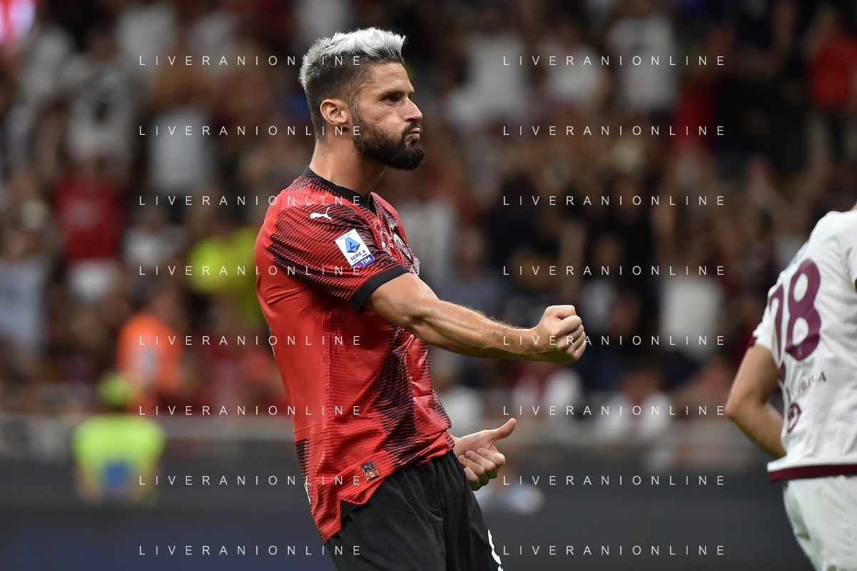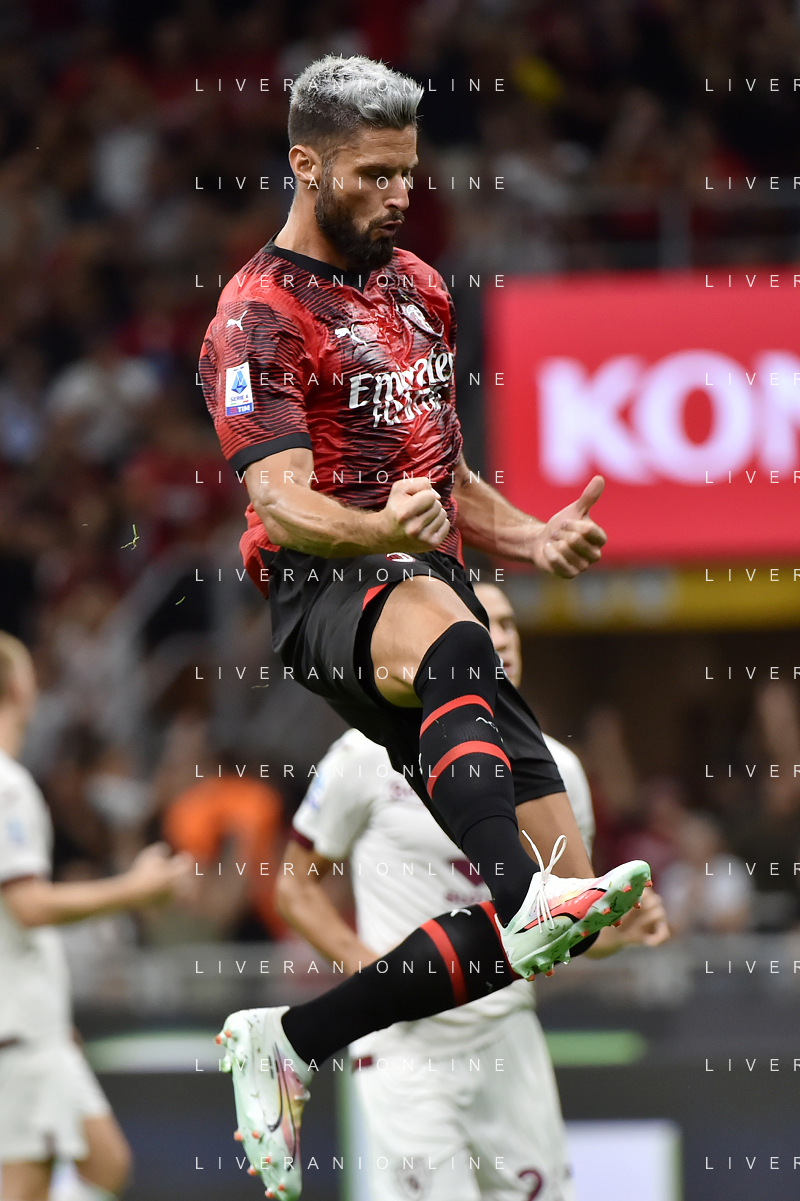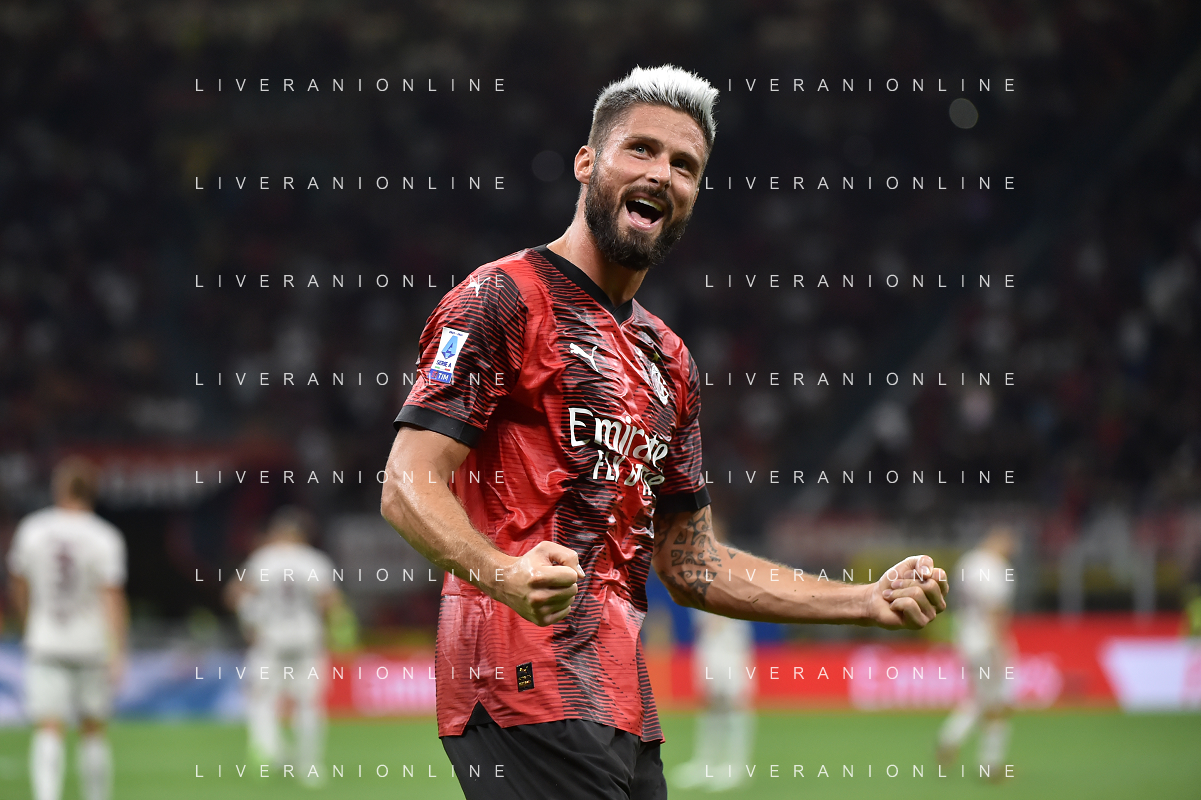 Milan vs Torino nella foto Olivier Giroud (Milan) esulta dopo il gol del 2 a 1 Milano 26-08-2023 Stadio Giuseppe Meazza - San Siro Campionato Serie A TIM - 2a giornata foto Roberto Garavaglia/ag. Aldo Liverani sas