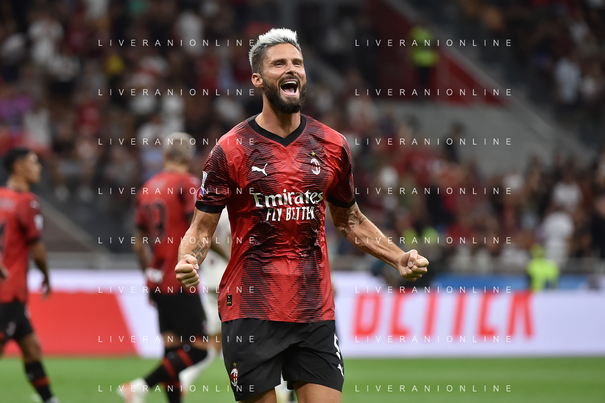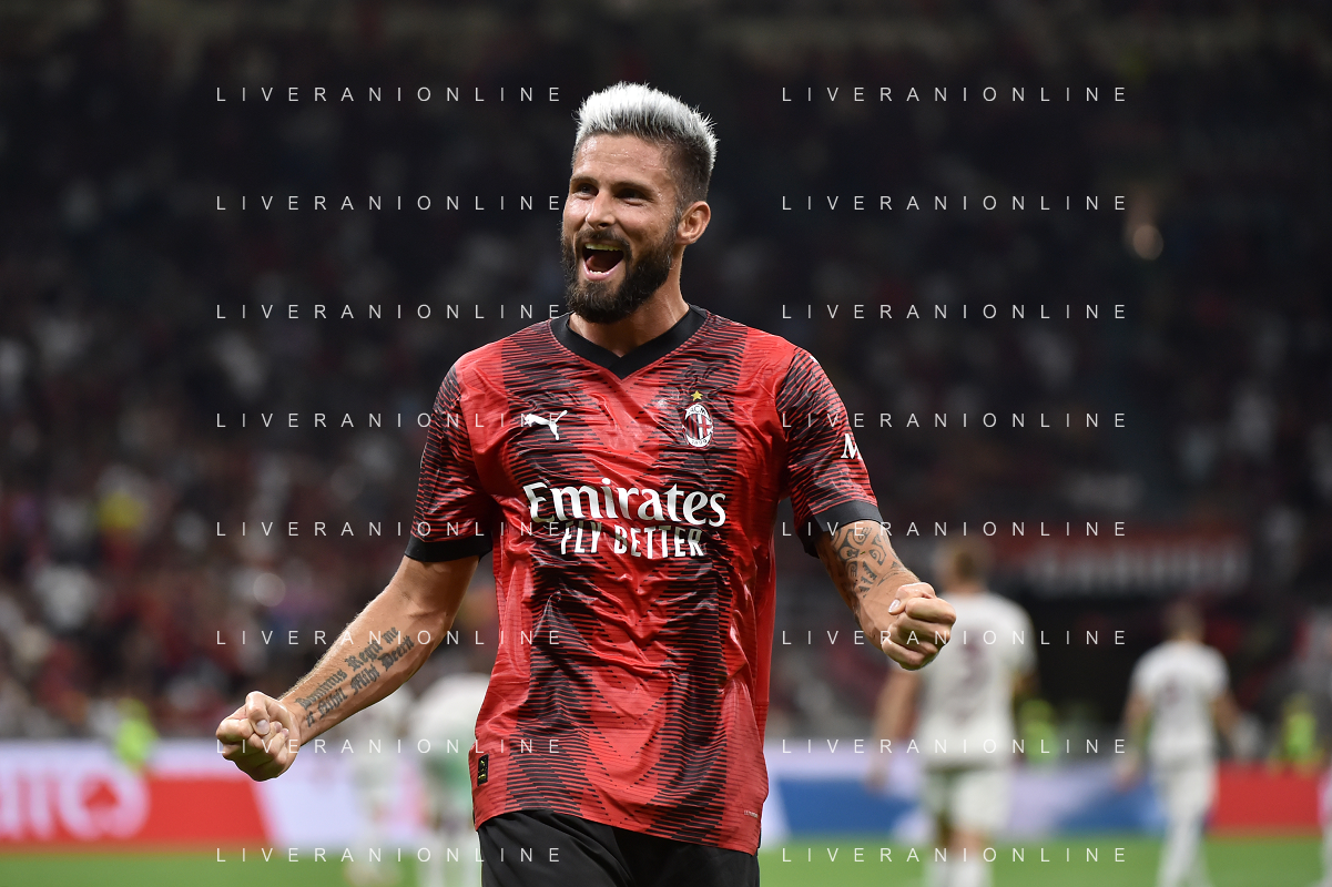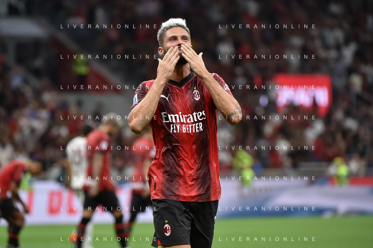 Milan vs Torino nella foto Olivier Giroud (Milan) esulta dopo il gol del 4 a 1 Milano 26-08-2023 Stadio Giuseppe Meazza - San Siro Campionato Serie A TIM - 2a giornata foto Roberto Garavaglia/ag. Aldo Liverani sas
