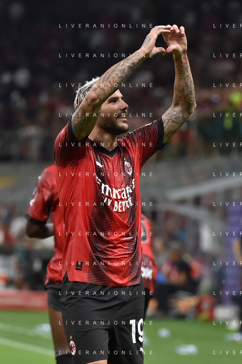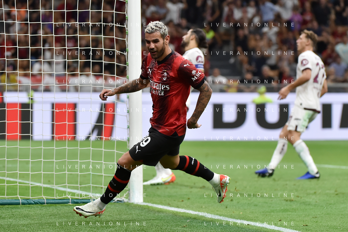 Milan vs Torino nella foto Theo Hernandez (Milan) esulta dopo il gol del 3 a 1 Milano 26-08-2023 Stadio Giuseppe Meazza - San Siro Campionato Serie A TIM - 2a giornata foto Roberto Garavaglia/ag. Aldo Liverani sas