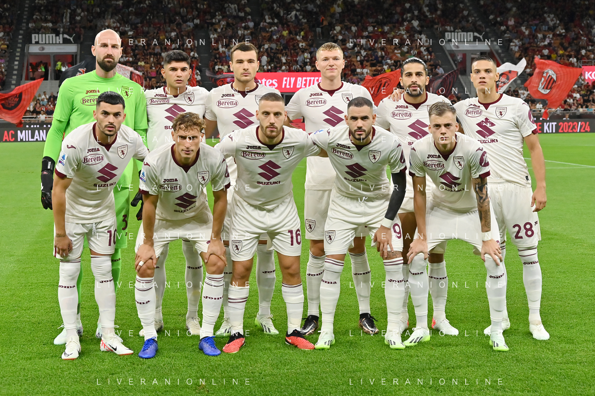 Milan vs Torino nella foto formazione Torino, in piedi da SX Vanja Milinkovic-Savic, Raoul Bellanova, Alessandro Buongiorno, Perr Schuurs, Ricardo Rodriguez e Samuele Ricci; in basso da SX Nemanja Radonjic, Mergim Vojvoda, Nikola Vlasic, Antonio Sanabria e Ivan Ilic Milano 26-08-2023 Stadio Giuseppe Meazza - San Siro Campionato Serie A TIM - 2a giornata foto Roberto Garavaglia/ag. Aldo Liverani sas