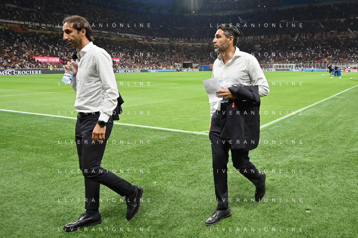 Milan vs Torino nella foto Emiliano Moretti SX collaboratore dell'area tecnica Torino e Davide Vagnati DX direttore sportivo Torino Milano 26-08-2023 Stadio Giuseppe Meazza - San Siro Campionato Serie A TIM - 2a giornata foto Roberto Garavaglia/ag. Aldo Liverani sas