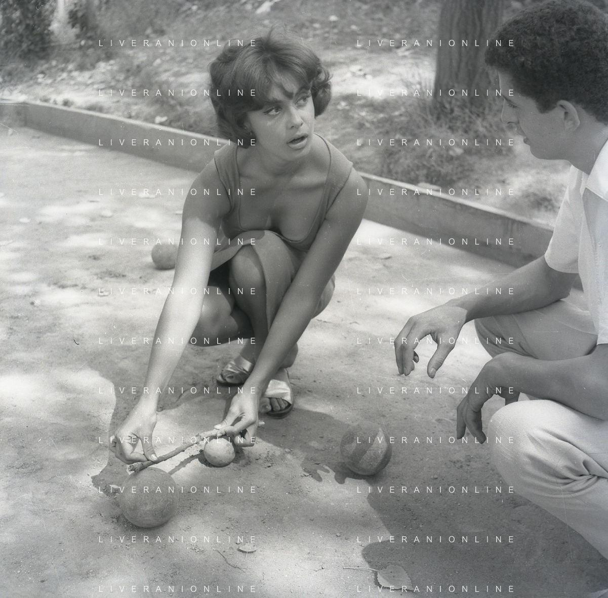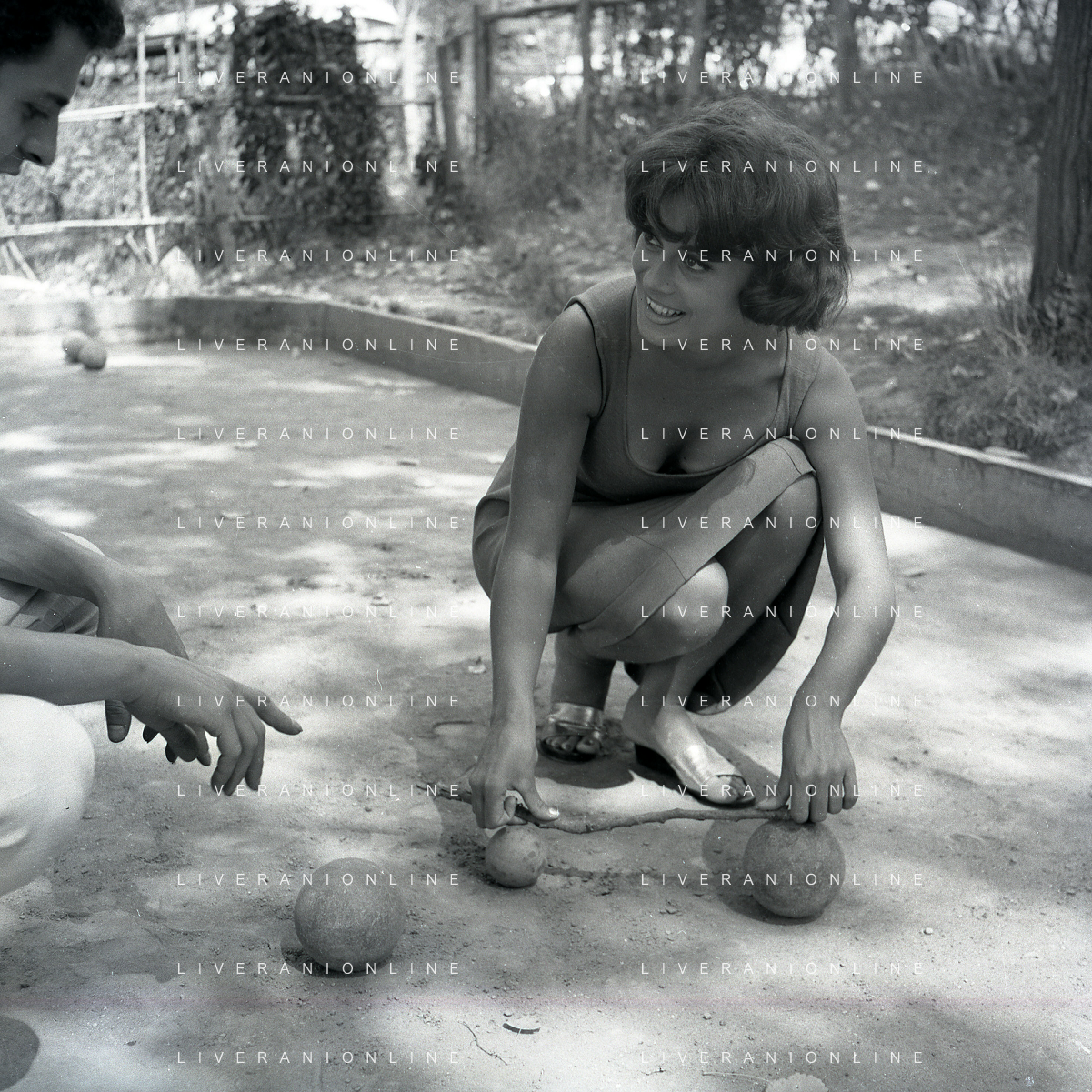 NEG-RETROSPETTIVA ANNA MARIA FERRERO ATTRICE NELLA FOTO ANNA MARIA FERRERO NELL'ANNO 1958 MENTRE GIOCA A BOCCE A ROMA FOTO SANDRO VESPASIANI-AG ALDO LIVERANI SAS