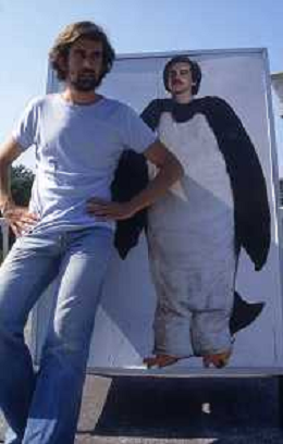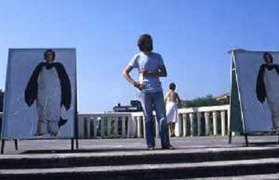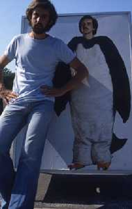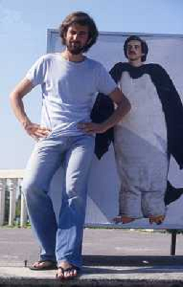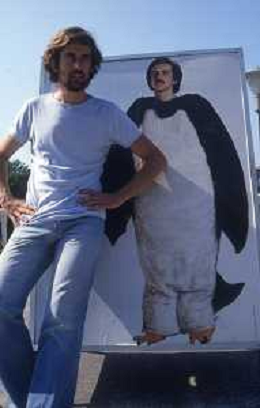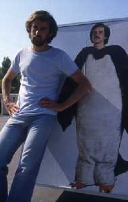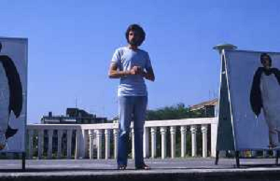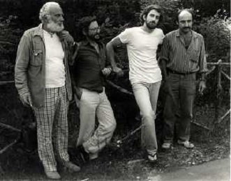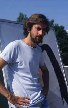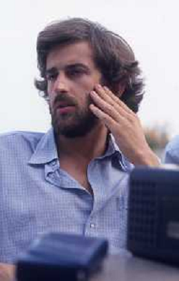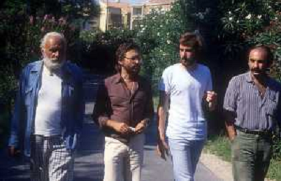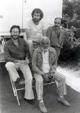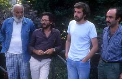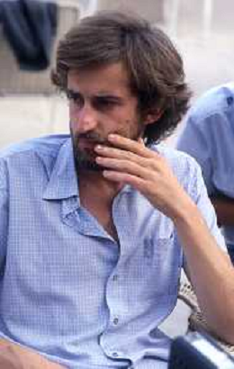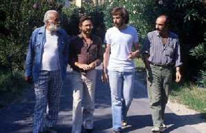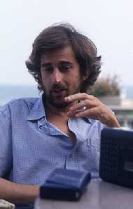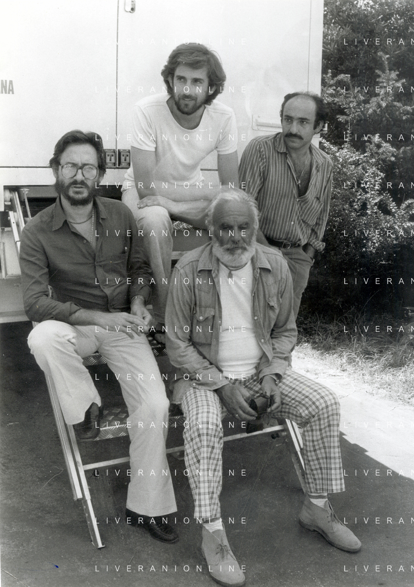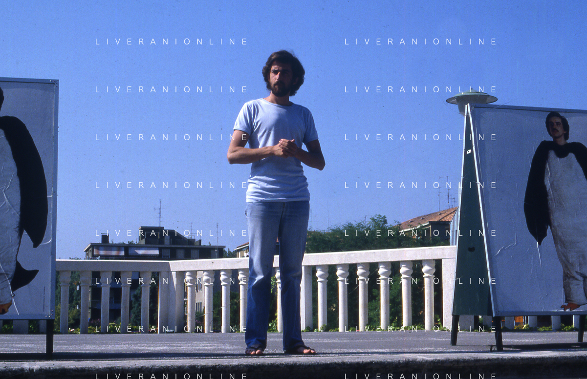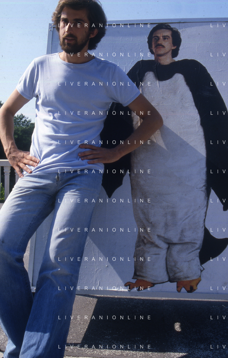 DIAP-RETROSPETTIVA NANNI MORETTI REGISTA NELLA FOTO NANNI MORETTI A VENEZIA NELL'ANNO 1981 CON ALESSANDRO HABER RENZO ROSSELLINI E GIGIO MORRA CAST DEL FILM SOGNI D'ORO AG ALDO LIVERANI SAS