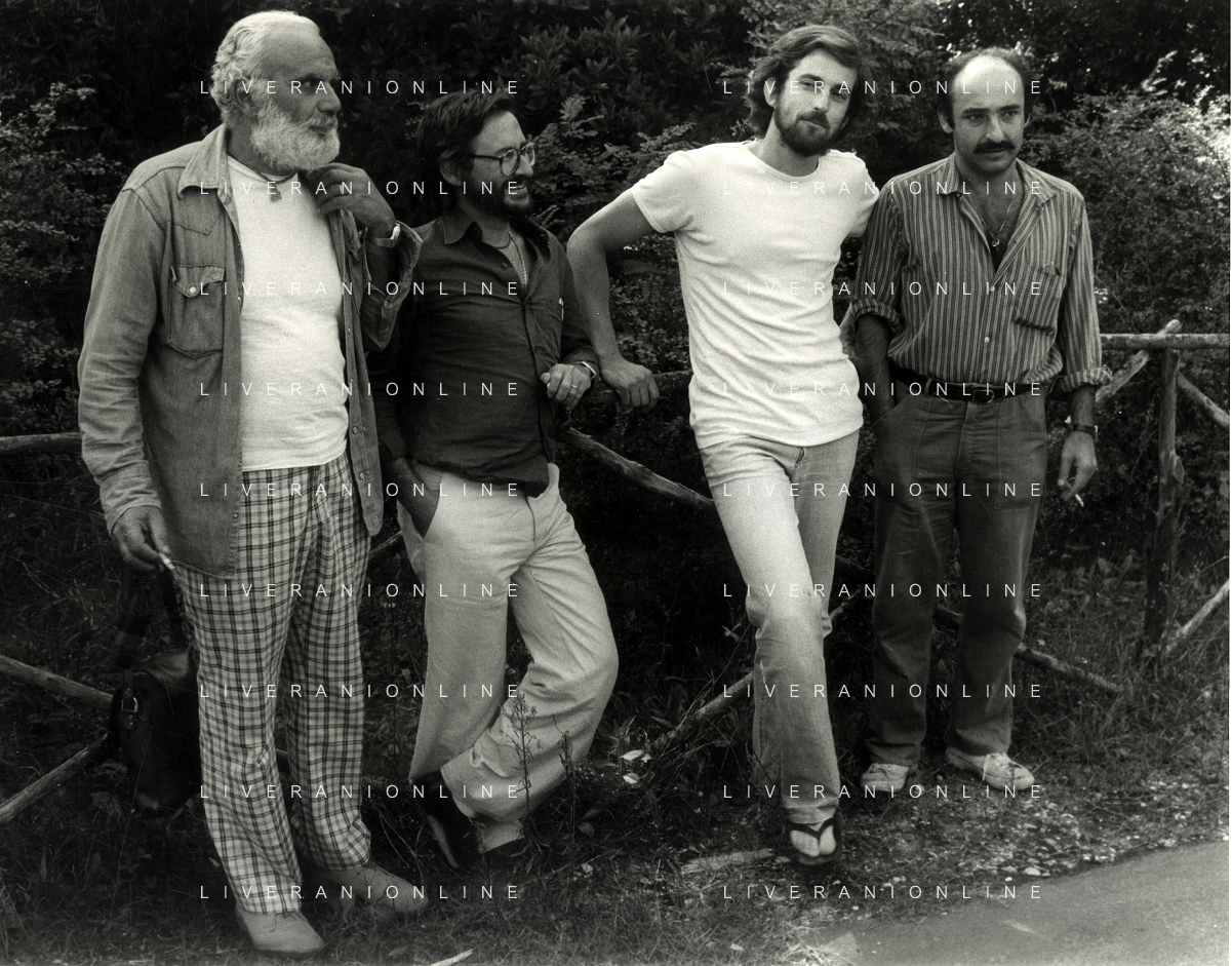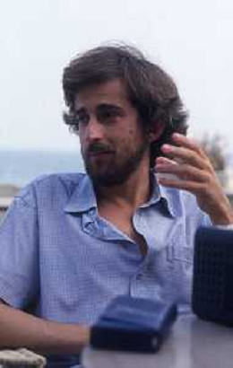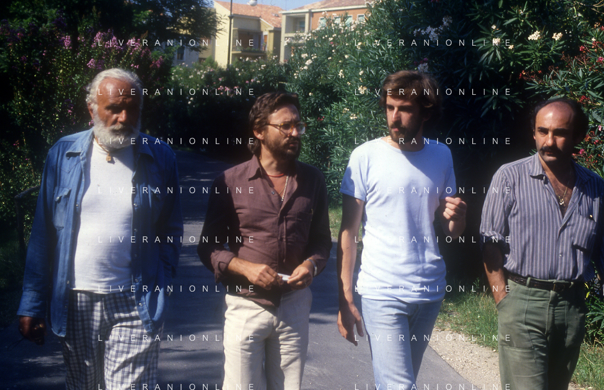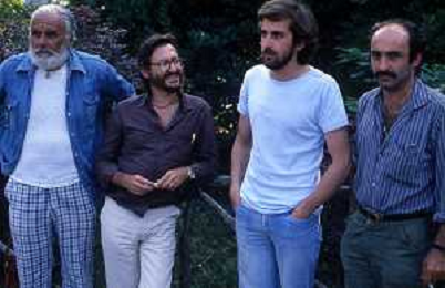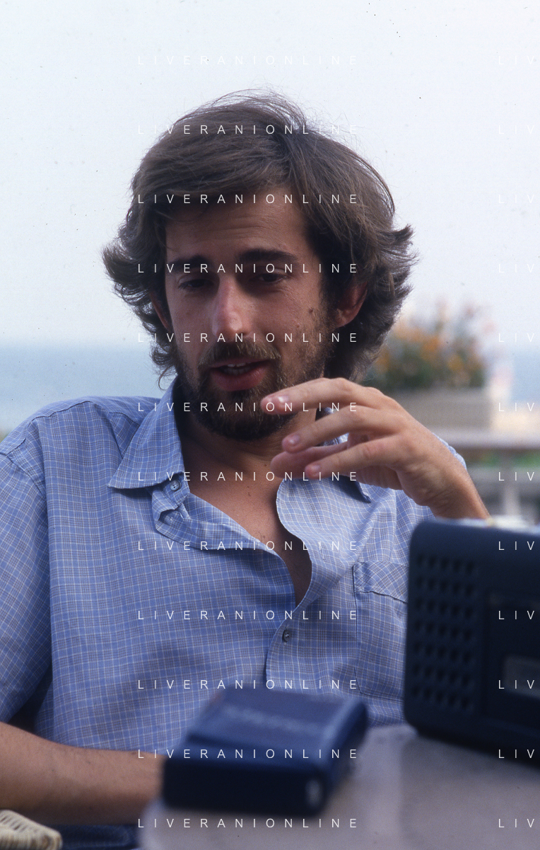 DIAP-RETROSPETTIVA NANNI MORETTI REGISTA NELLA FOTO NANNI MORETTI A VENEZIA NELL'ANNO 1981 CON ALESSANDRO HABER -RENZO ROSSELLINI E GIGIO MORRA CAST DEL FILM SOGNI D'ORO AG ALDO LIVERANI SAS