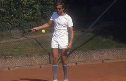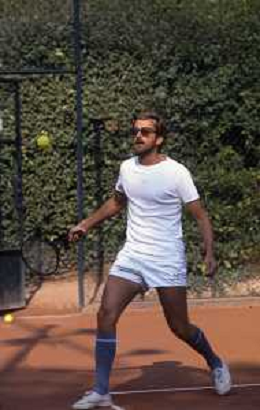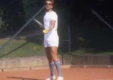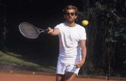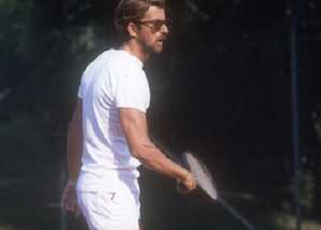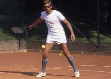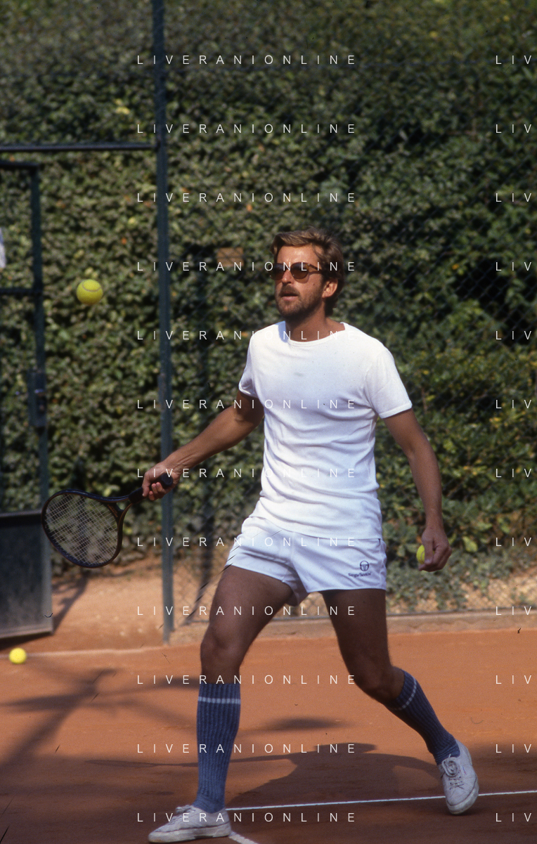 NEG-RETROSPETTIVA NANNI MORETTI REGISTA NELLA FOTO NANNI MORETTI A VENEZIA GIOCA A TENNIS NELL'ANNO 1986 AG ALDO LIVERANI SAS