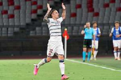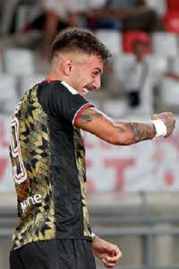 Īlias Koutsoupias (SSC Bari) celebrates during the Italian Serie B match SSC Bari vs AS Cittadella on August 30, 2023 at the San Nicola stadium in Bari, Italy. Photo by Emmanuele Mastrodonato/ag. Aldo Liverani sas