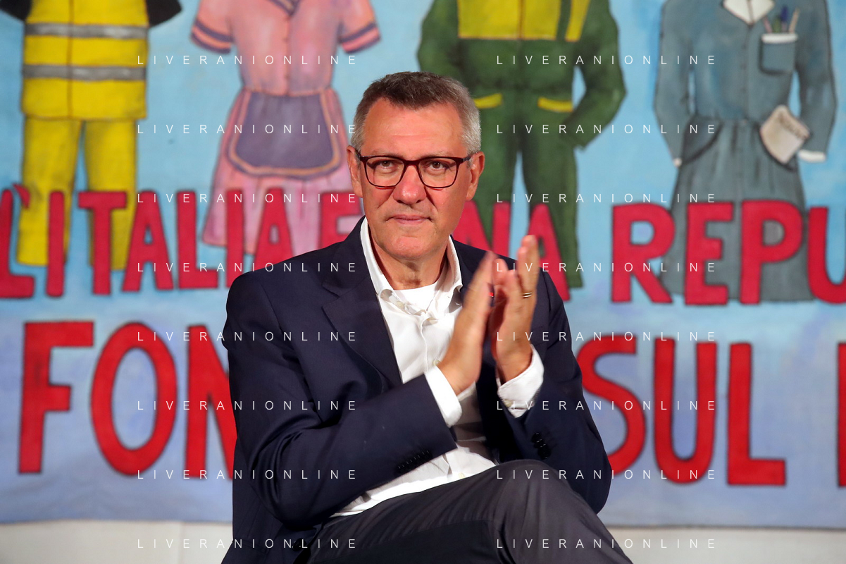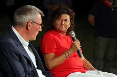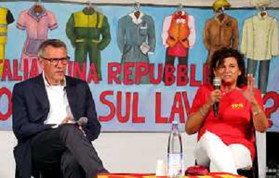 IMOLA 31 08 2023 SEGRETARIO CGIL NAZIONALE MAURIZIO LANDI I A IMOLA NELLA FOTO MIRELLA COLLINA SEGRETARIA CGIL IMOLA FOTO GIANNI SANNA-AG ALDO LIVERANI SAS