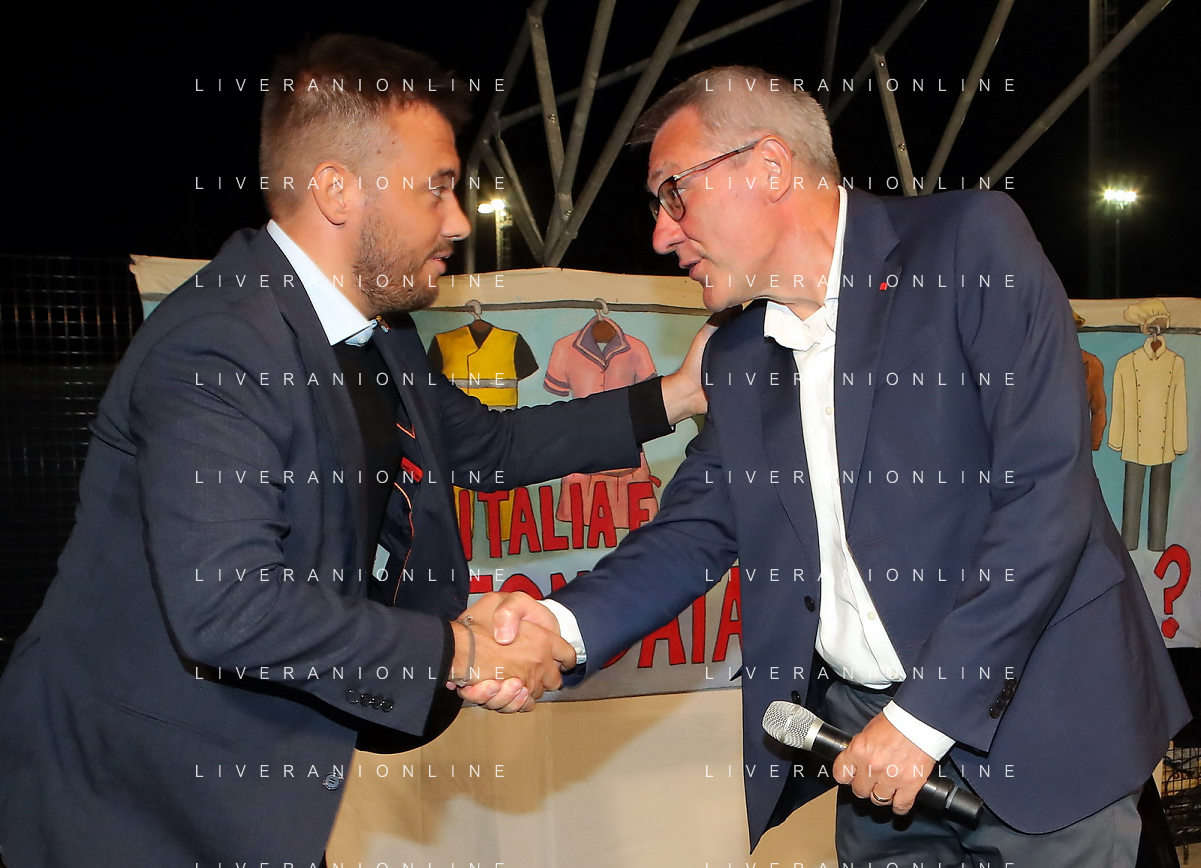 IMOLA 31 08 2023 SEGRETARIO CGIL NAZIONALE MAURIZIO LANDI I A IMOLA NELLA FOTO SINDACO MARCO PANIERI E MAURIZIO LANDINI FOTO GIANNI SANNA-AG ALDO LIVERANI SAS