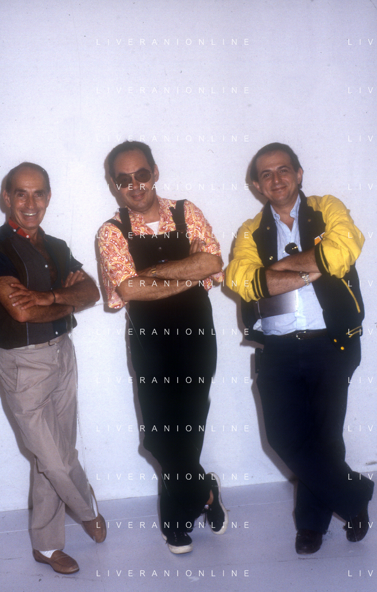 DIAP-RETROSPETTIVA GIANNI BONCOMPAGNI CONDUTTORE RADIOFONICO E PAROLIERE NELLA FOTO GIANNI BONCOMPAGNI CON DON LURIO E GIANCARLO MAGALLI AG ALDO LIVERANI SAS