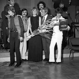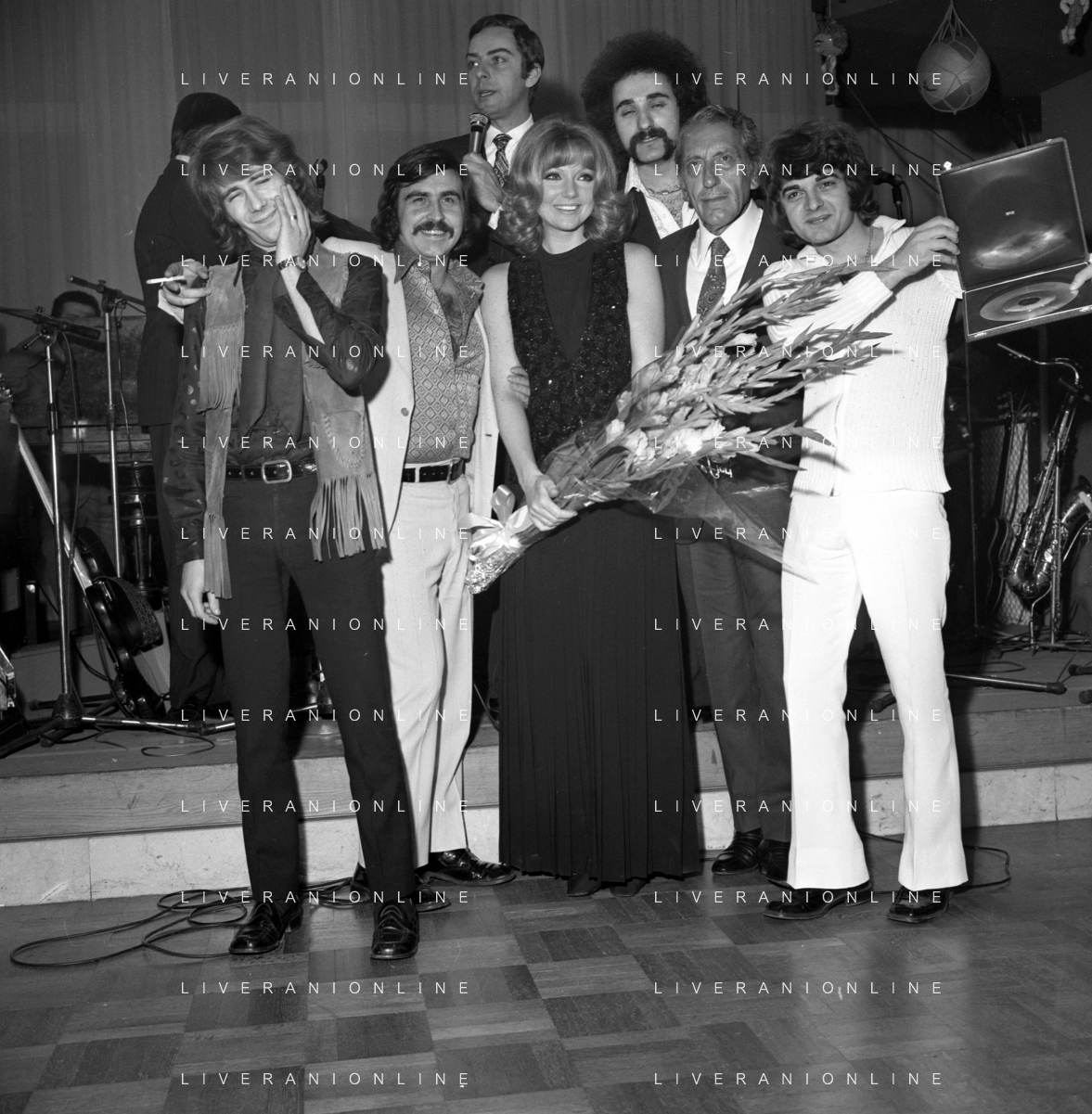 Neg- RETROSPETTIVA PREMIO REGIA TELEVISIVA NELLA FOTO LA PREMIAZIONE DEL GRUPPO MUSICALE I CAMALEONTI A SALSOMAGGIORE NELL'ANNO 1970 - SYLVA KOSCINA AG ALDO LIVERANI SAS