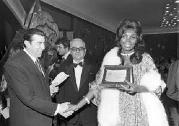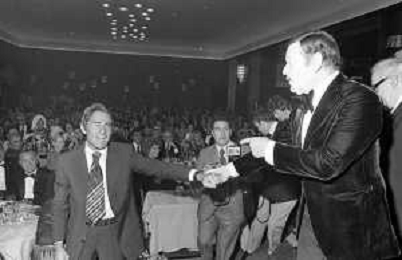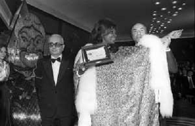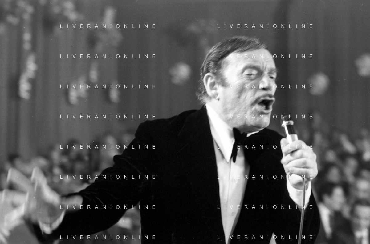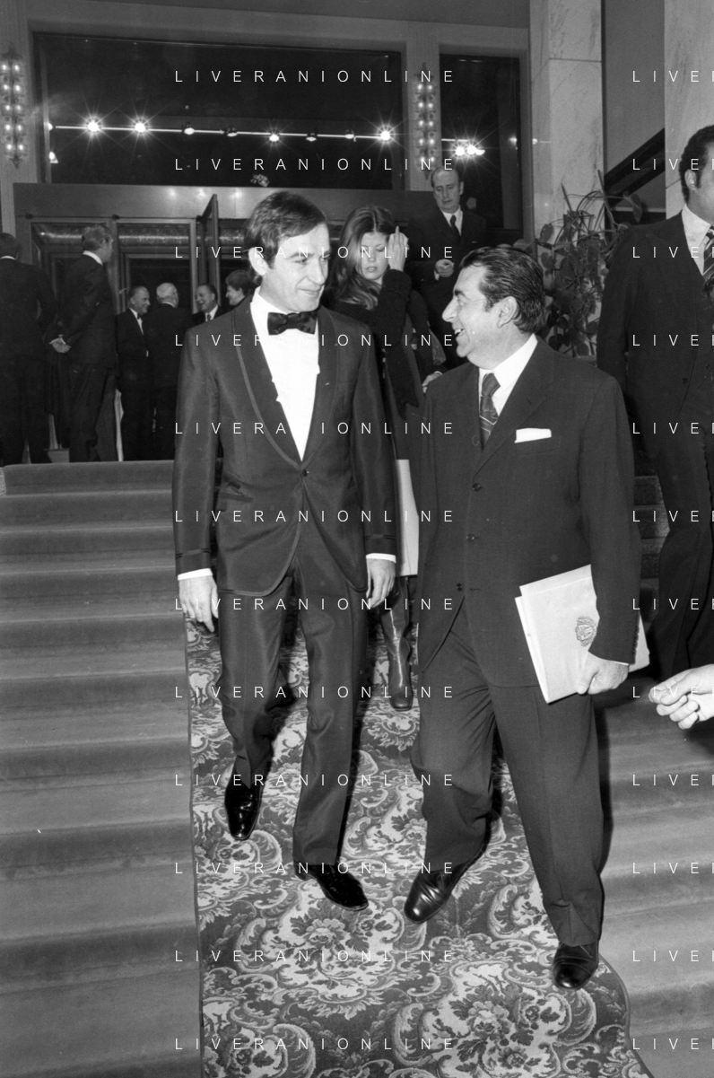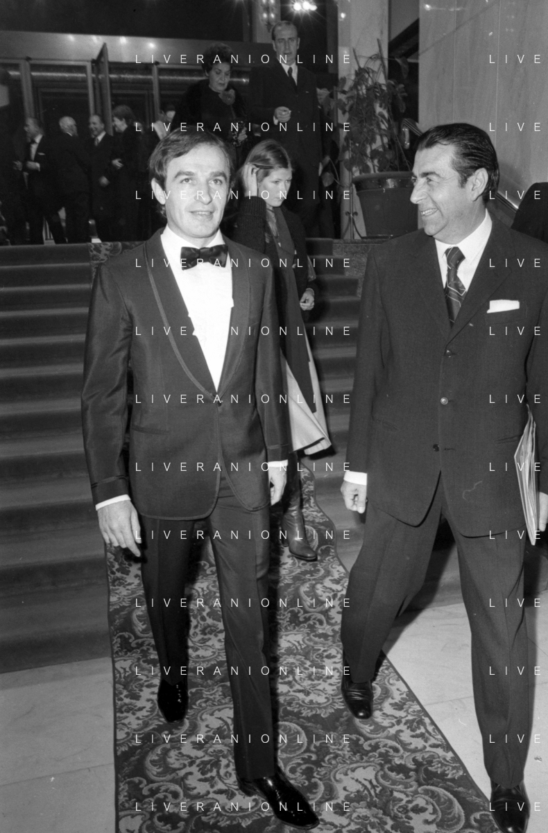 RETROSPETTIVA PREMIAZIONE DELLE MASCHERE D'ARGENTO A CAMPIONE D'ITALIA NELL'ANNO 1974 NELLA FOTO EDDIE CONSTANTINE CON WALTER CHIARI AG ALDO LIVERANI SAS