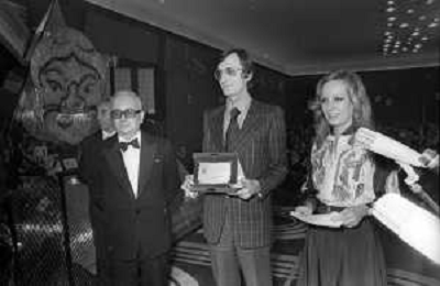 RETROSPETTIVA PREMIAZIONE DELLE MASCHERE D'ARGENTO A CAMPIONE D'ITALIA NELL'ANNO 1974 NELLA FOTO CLAY REGAZZONI CON LA MOGLIE MARIA PIA AG ALDO LIVERANI SAS
