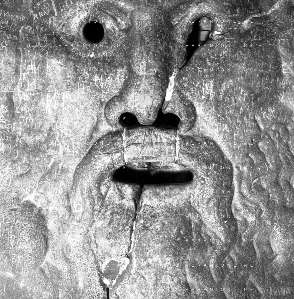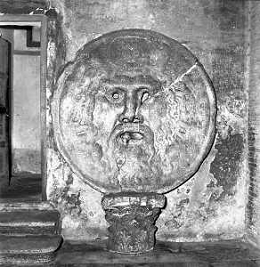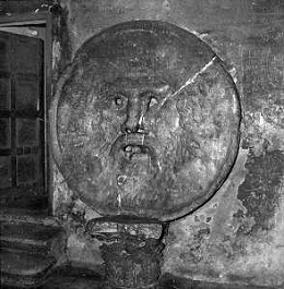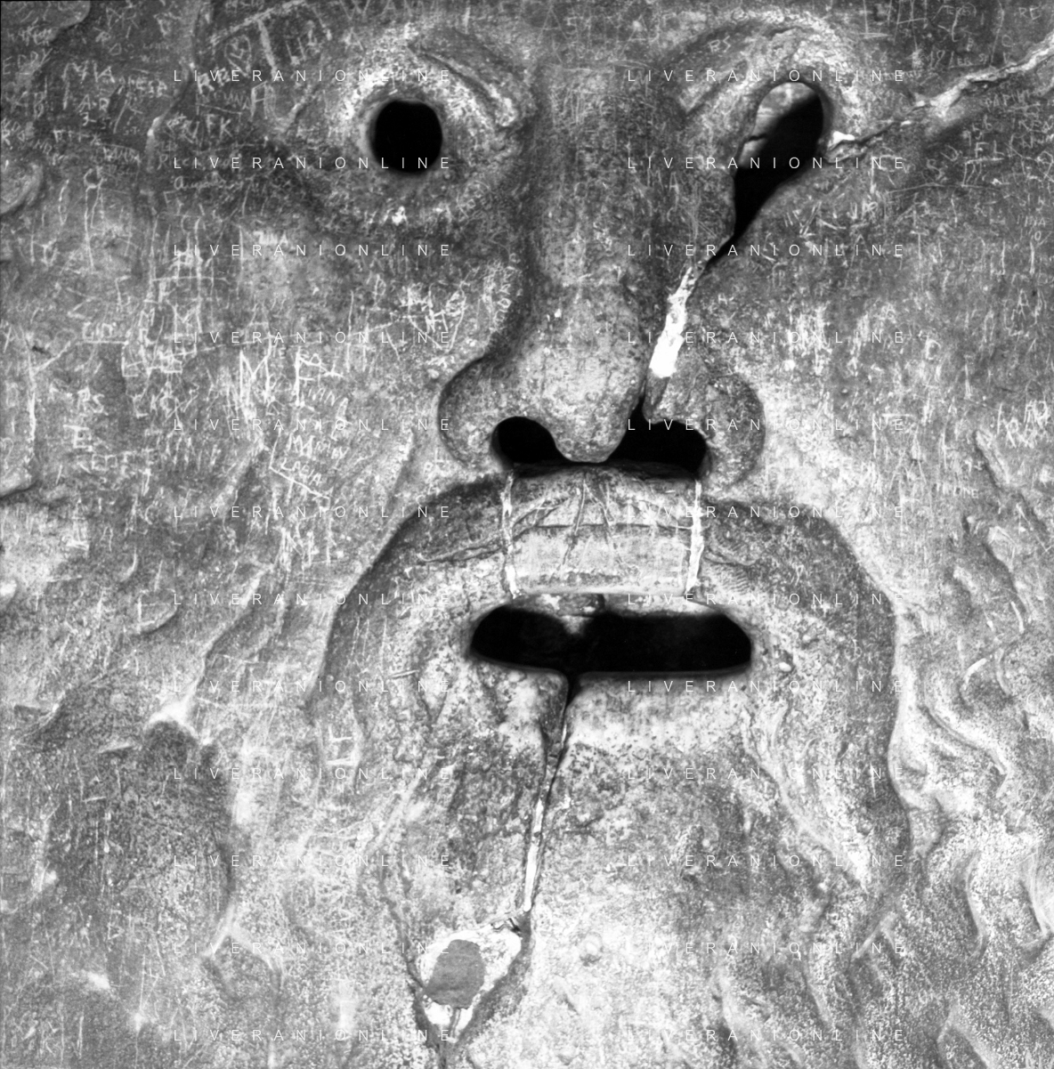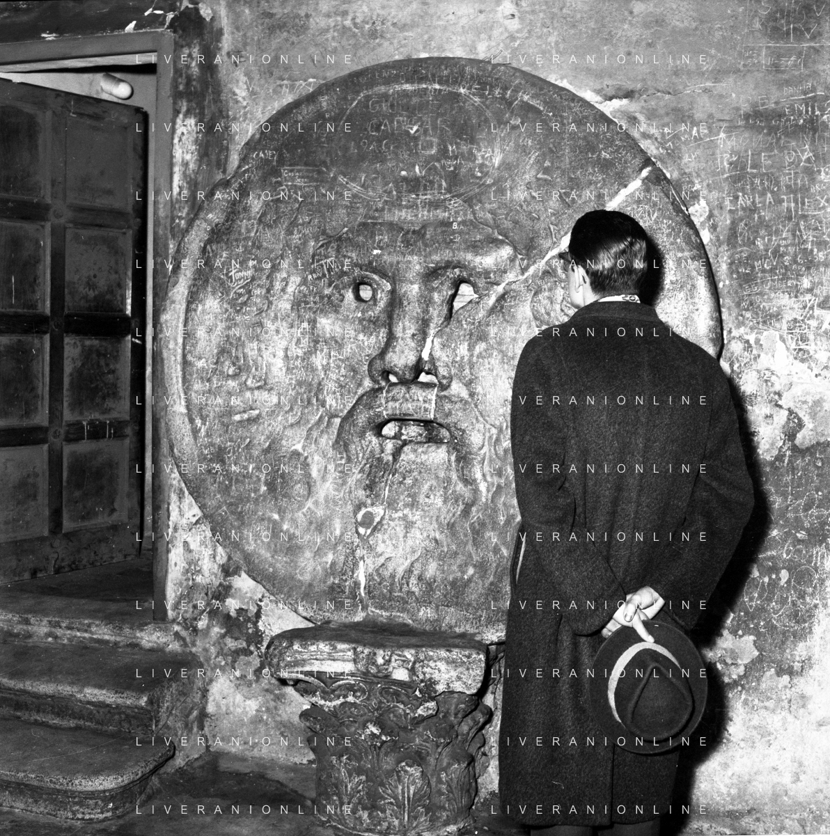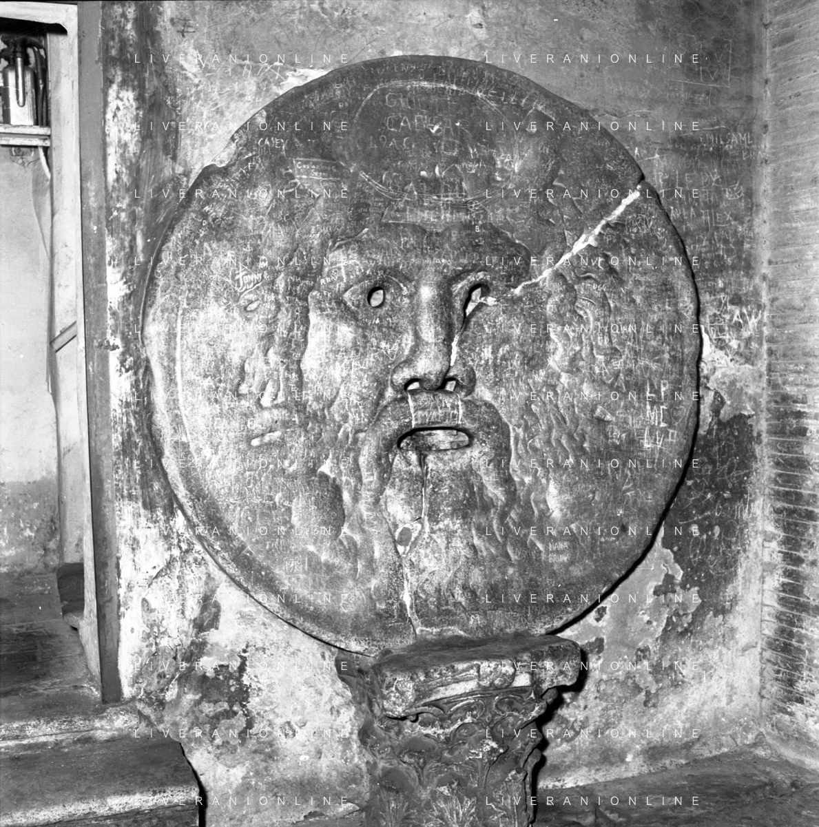 Neg- La Bocca della Verita', antico mascherone in marmo, si trova nel portico della chiesa di Santa Maria in Cosmedin dal 1632. Roma anni 50-60 AG ALDO LIVERANI SAS