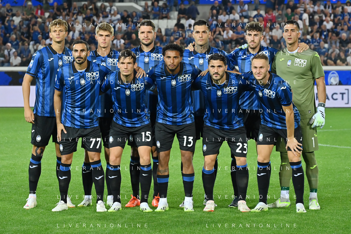 TVRG Atalanta vs Monza nella foto formazione Atalanta, in piedi da SX Giorgio Scalvini, Charles de Ketelaere, Berat Djimsiti, Gianluca Scamacca, Matteo Ruggeri e Juan Musso; in basso da SX Davide Zappacosta, Marten de Roon, Ederson Jose' dos Santos, Sead Kolasinac e Teun Koopmeiners Bergamo 02-09-2023 Gewiss Stadium - Stadio Atleti Azzurri d'Italia Campionato Serie A TIM - 3a giornata foto Roberto Garavaglia/ag. Aldo Liverani sas